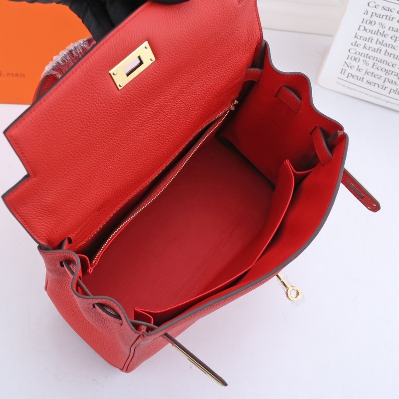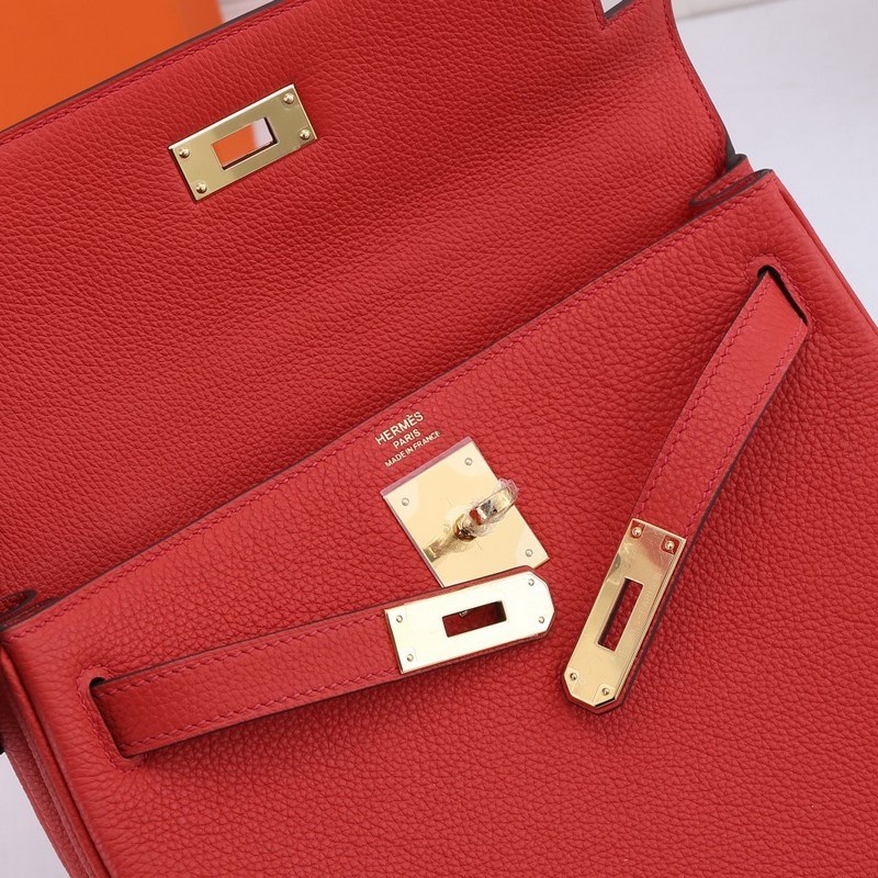 Herm?s Kelly 토트백 숄더백 중국산 레드 골드와 실버 하드웨어
