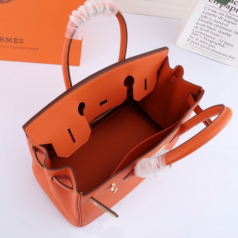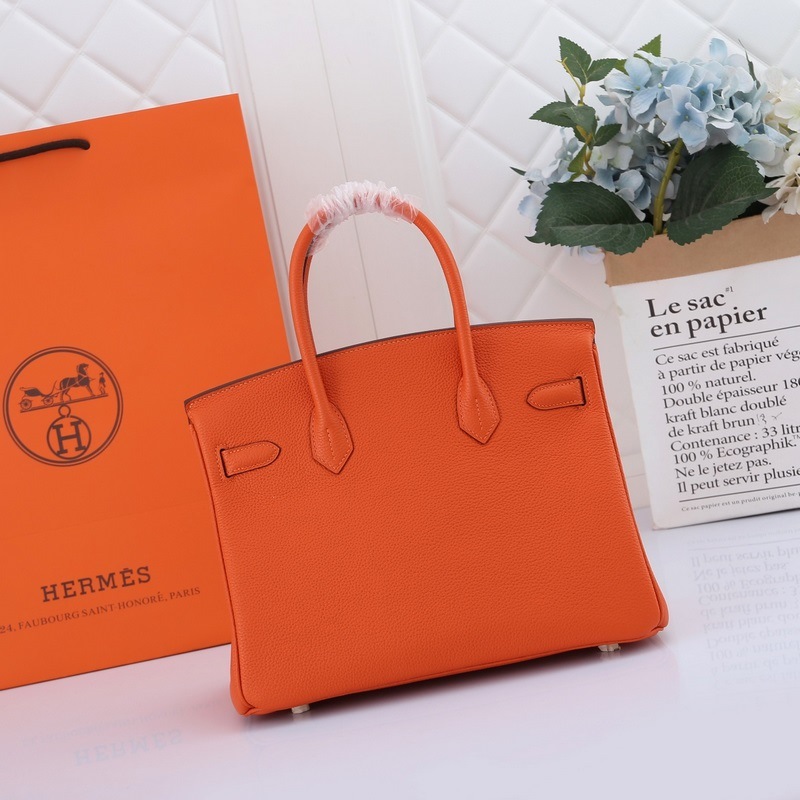 Herm?s Birkin 핸드백 오렌지 골드 실버 버클 수입된