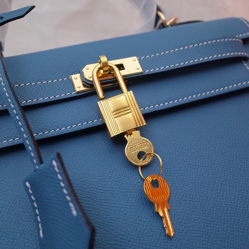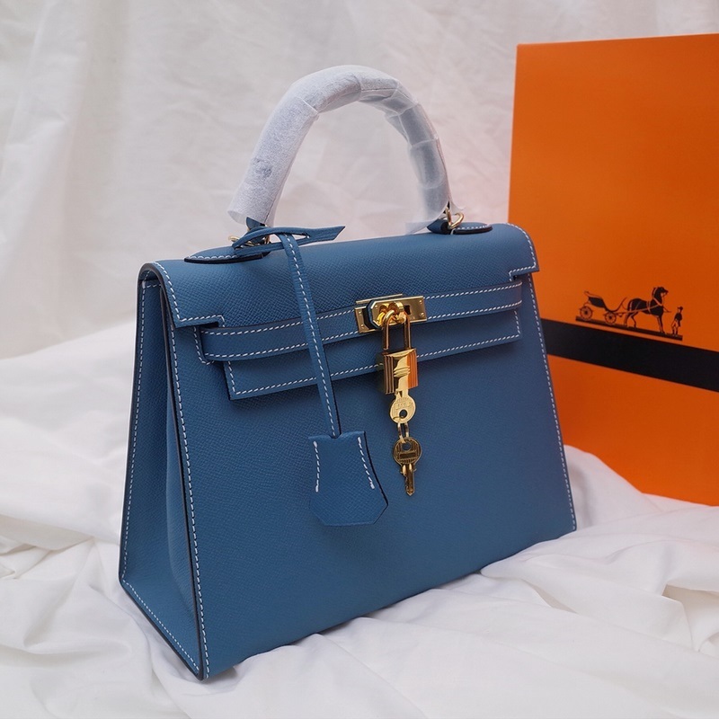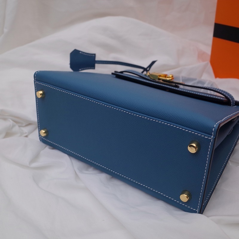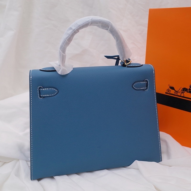 Herm?s Kelly 토트백 숄더백 데님 블루 골드 및 실버 하드웨어
