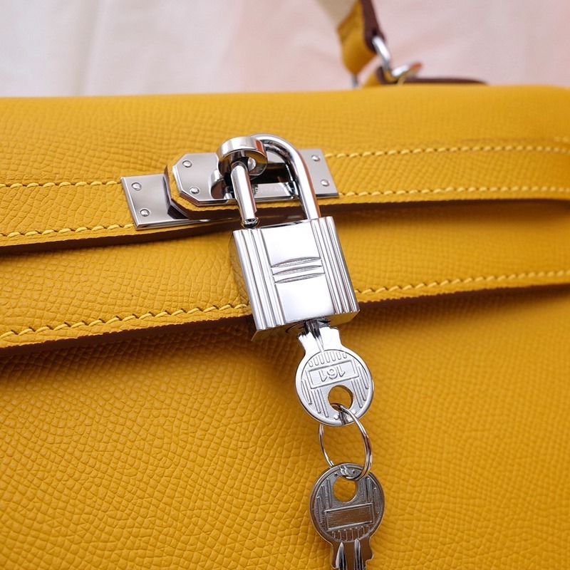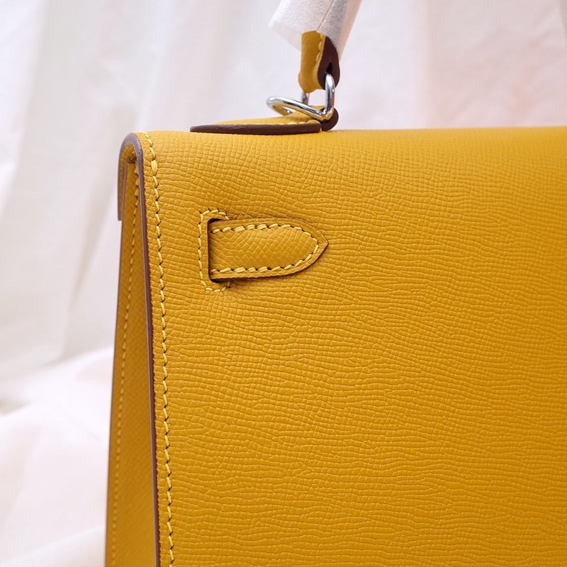 Herm?s Kelly 토트백 숄더백 앰버 골드 실버 버클 팜 그레인 가