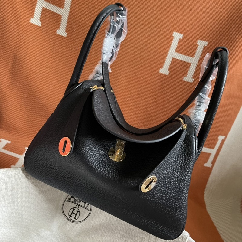 Herm?s Lindy Tote Bag 수입 TC 소가죽 블랙 골드와 실