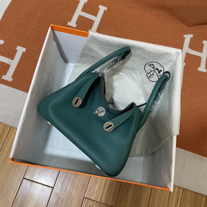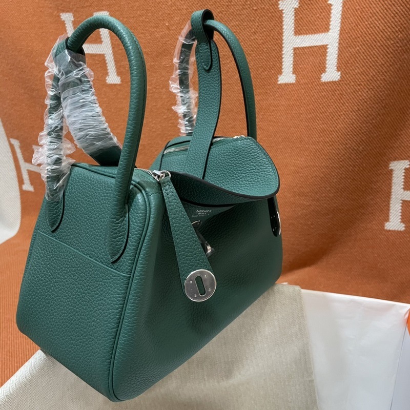 Herm?s Lindy Tote Bag 수입 TC 소가죽 피콕 그린 골드