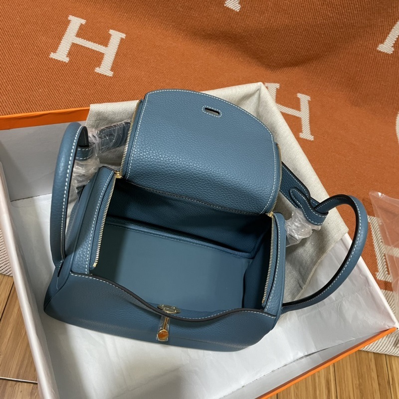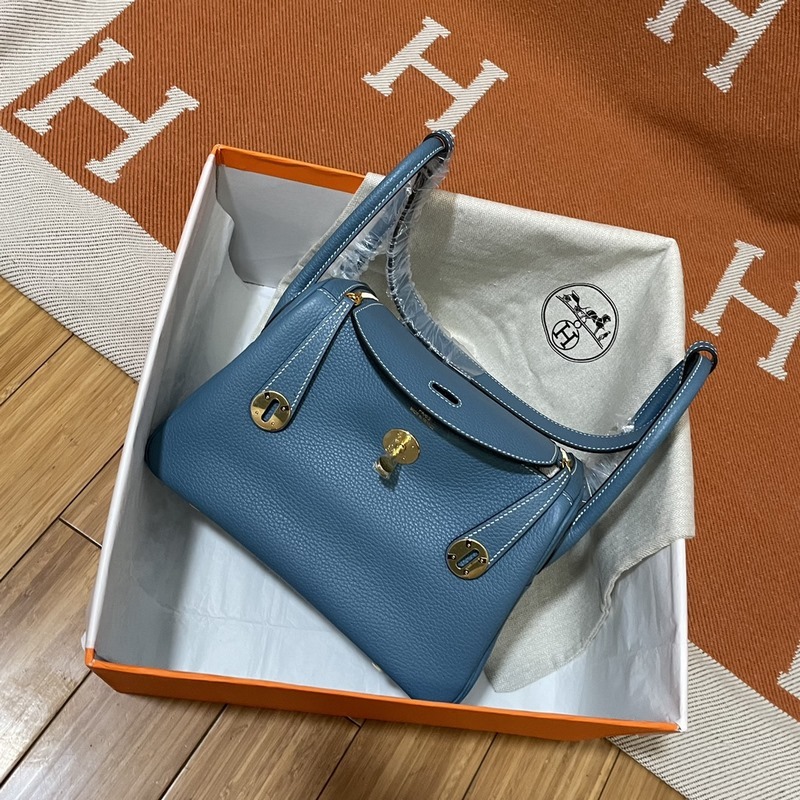Herm?s Lindy Tote Bag 수입 TC 소가죽 데님 블루 골드