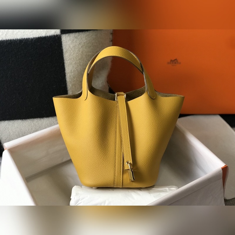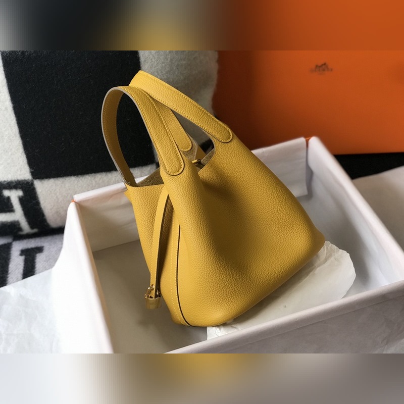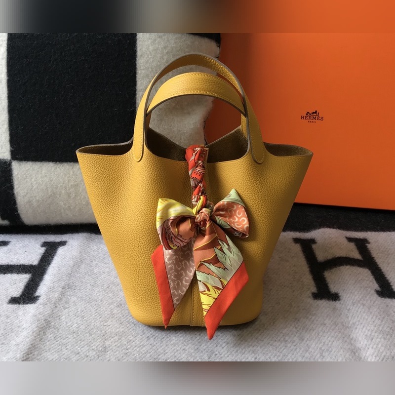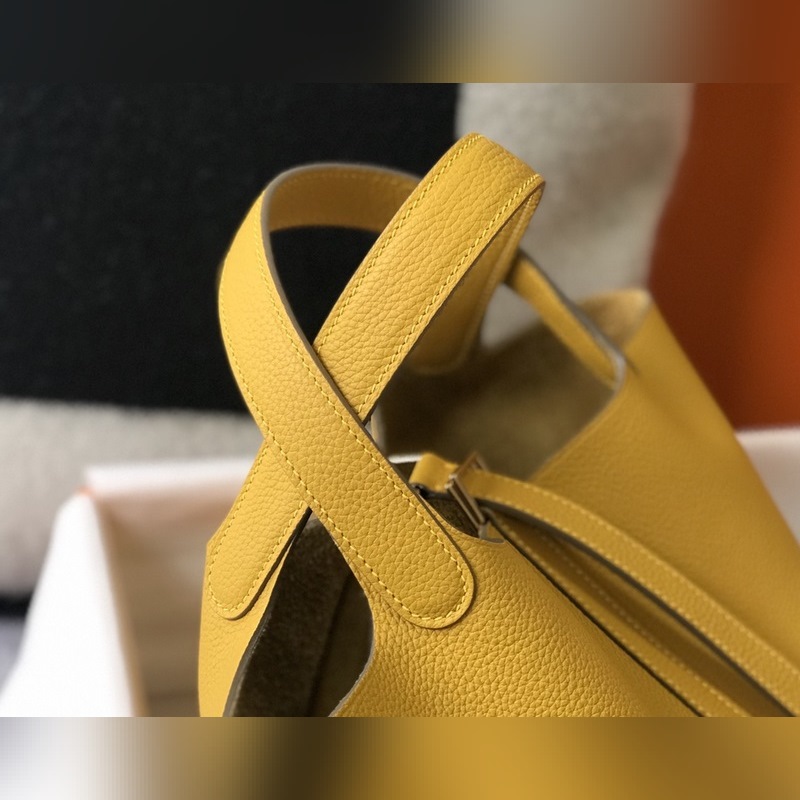 에르메스 피코틴 야채 바구니 토트백 밀랍 실로 수작업으로 꿰맨 TC 가죽