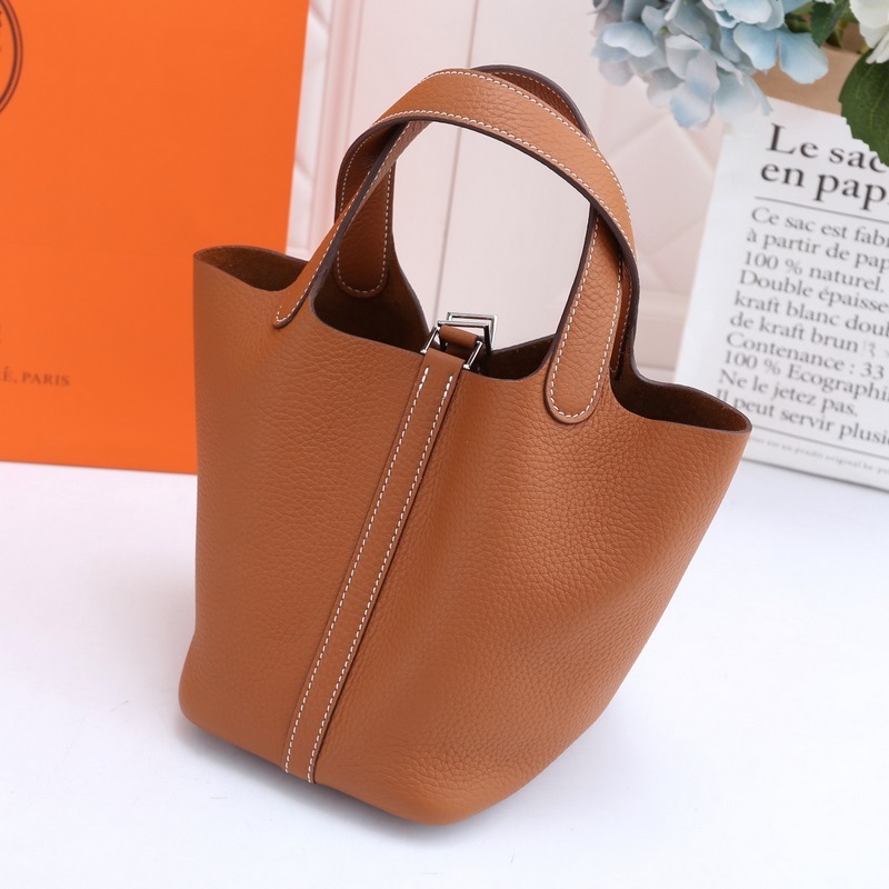 에르메스 피코틴 야채 바구니 토트백 밀랍 실로 수작업으로 꿰맨 TC 가죽