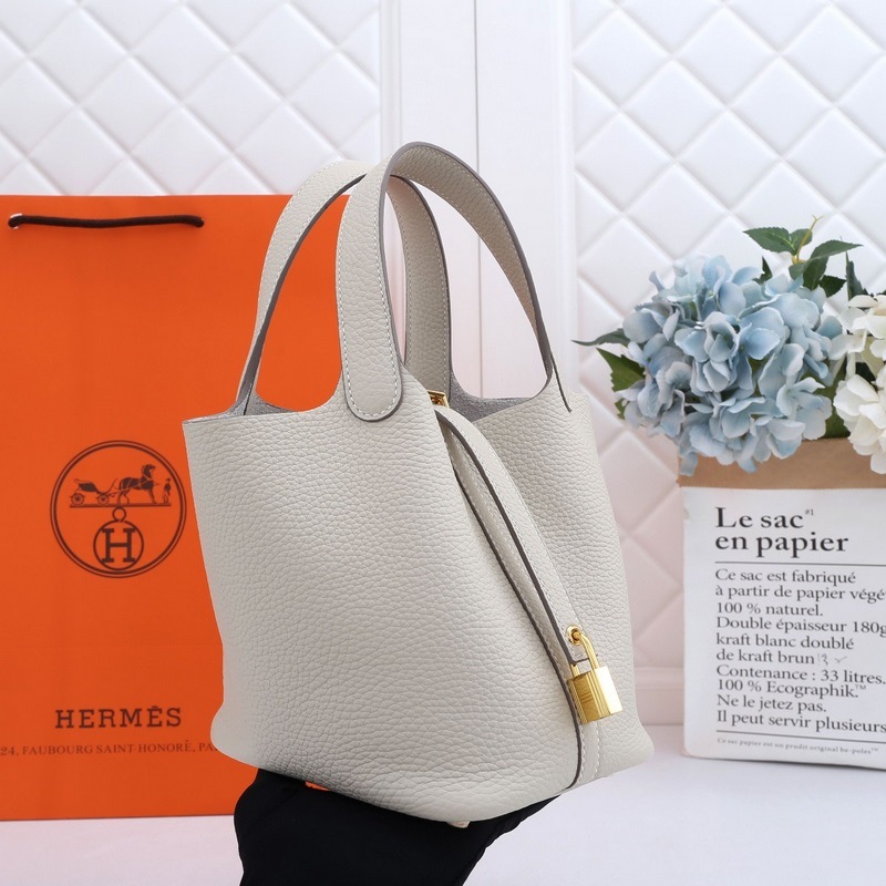 에르메스 피코틴 야채 바구니 토트백 밀랍 실로 수작업으로 꿰맨 TC 가죽