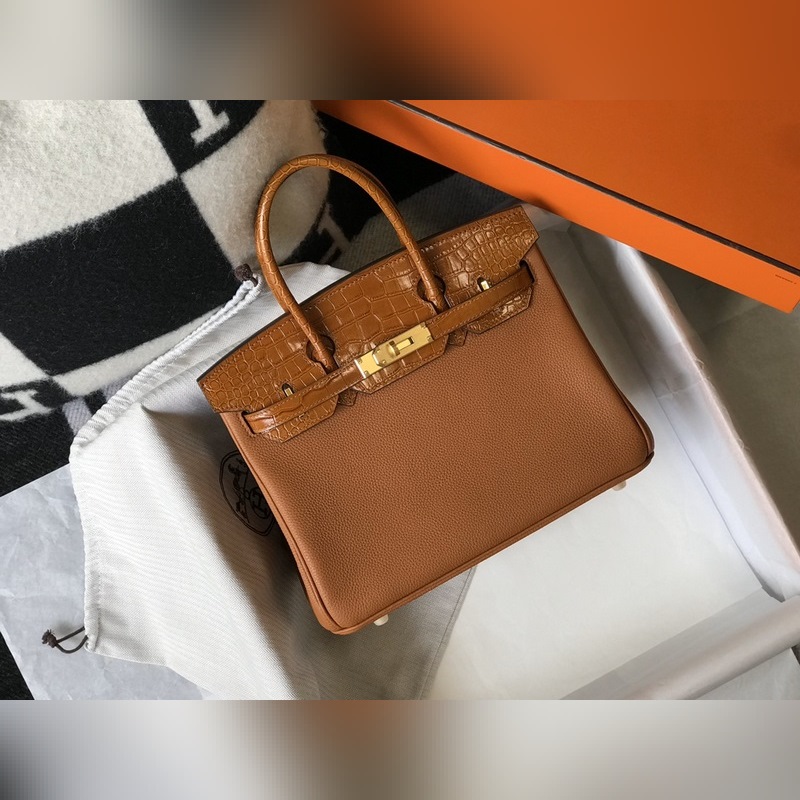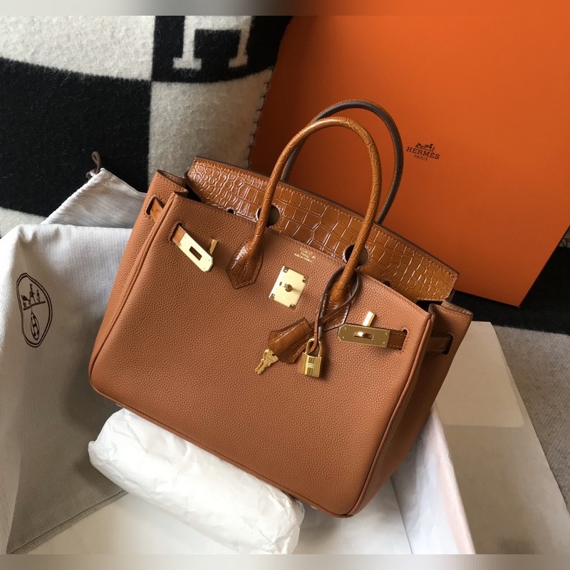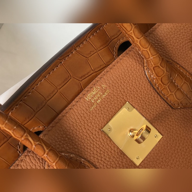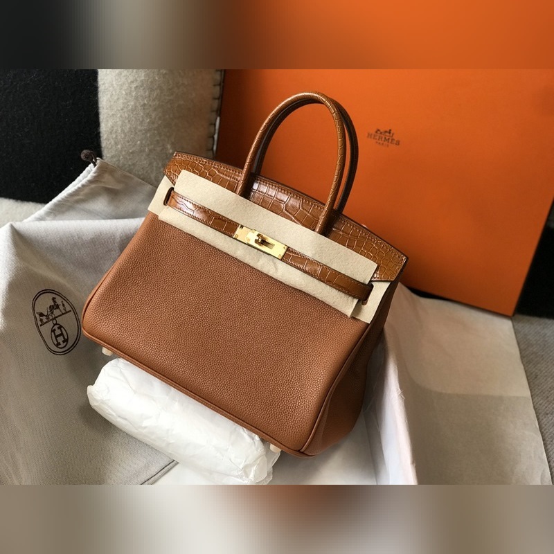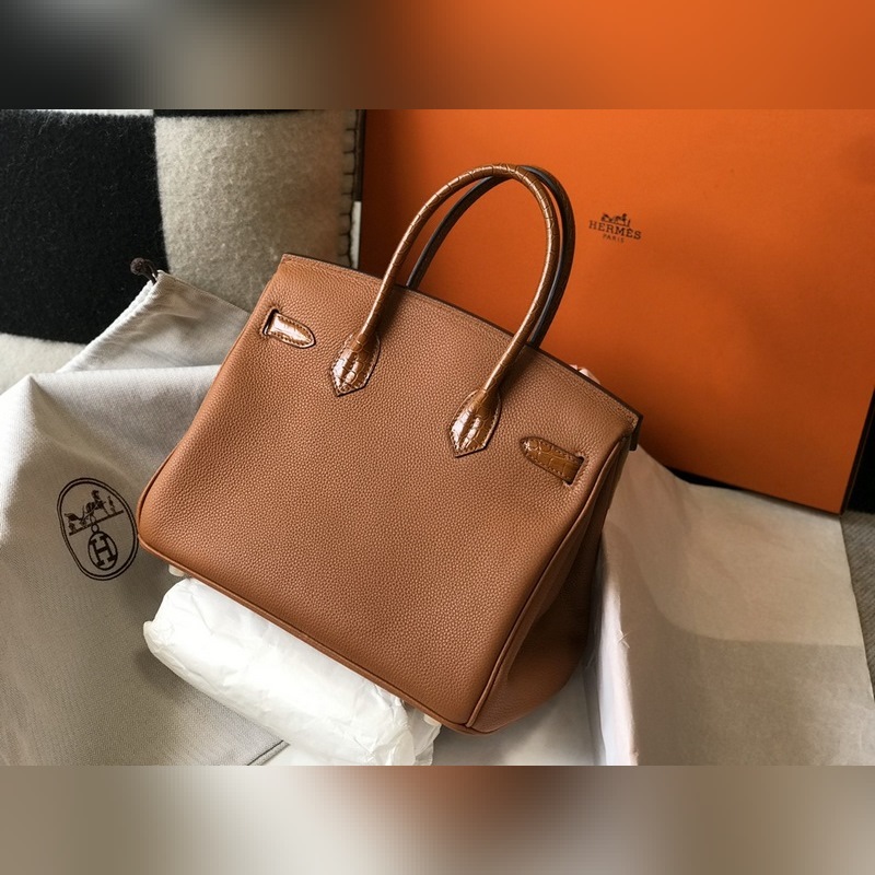 에르메스 골드 브라운 모조 악어 가죽 핸드백 다이아몬드 무늬의 황