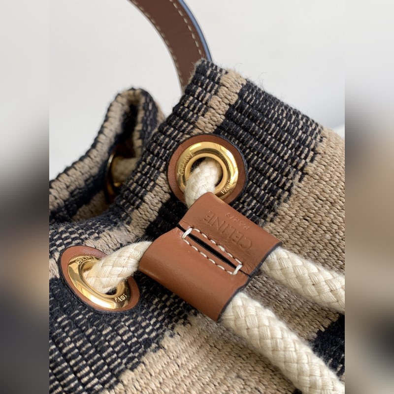 새로운 TEEN CELINE 패브릭과 소가죽 끈 달린 가방 베이지 / 황