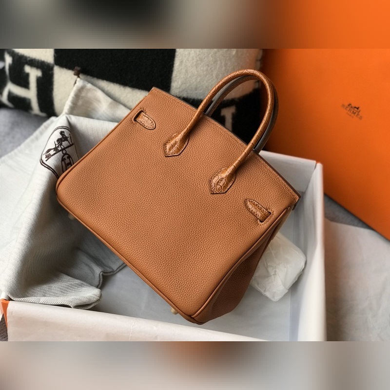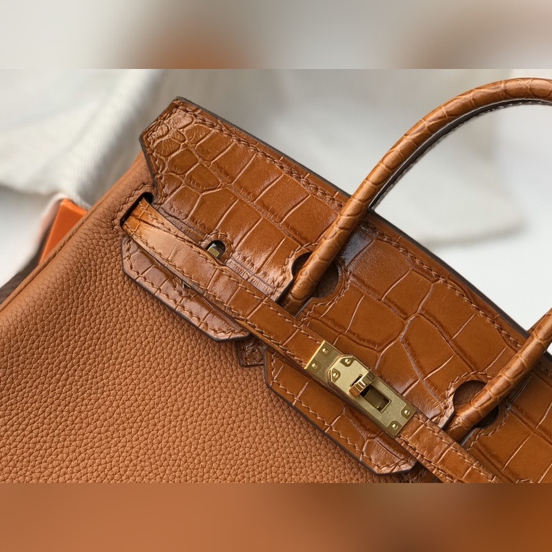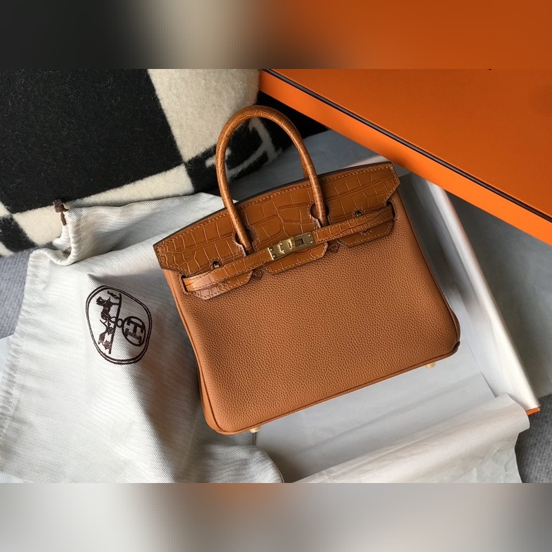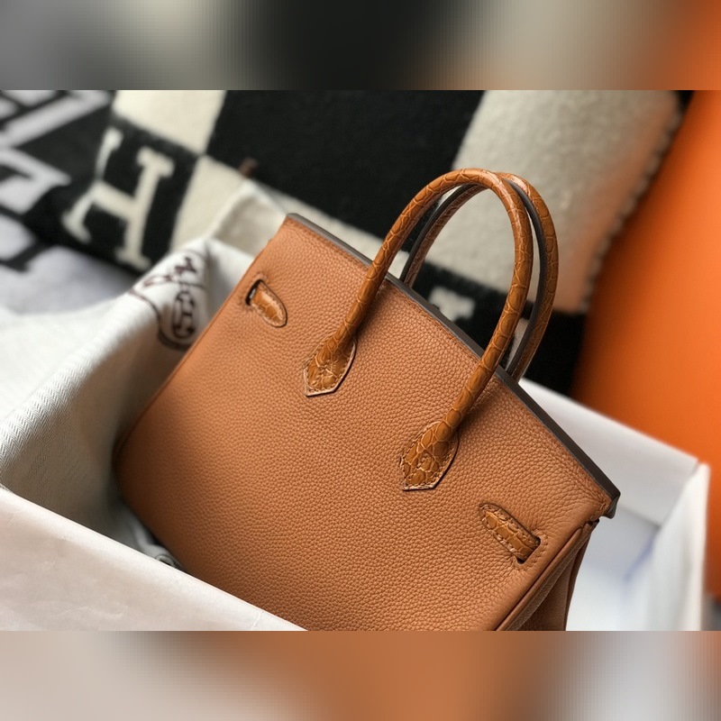 에르메스 골드 브라운 모조 악어 가죽 핸드백 다이아몬드 무늬의 황
