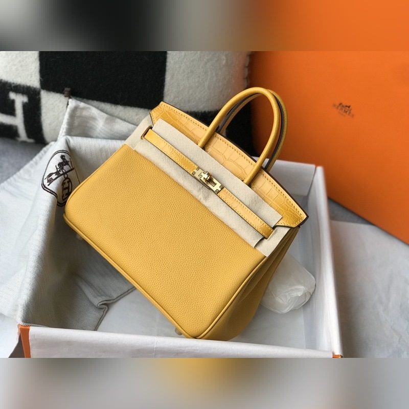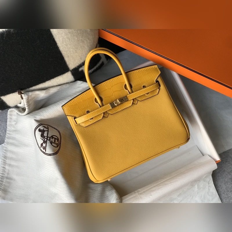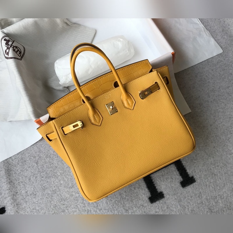 에르메스 호박색 모조 악어 토고 핸드백 부(富)의 색깔인 터치는