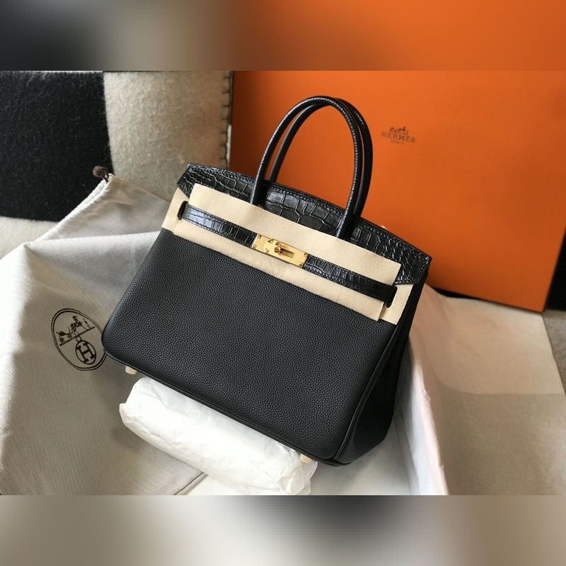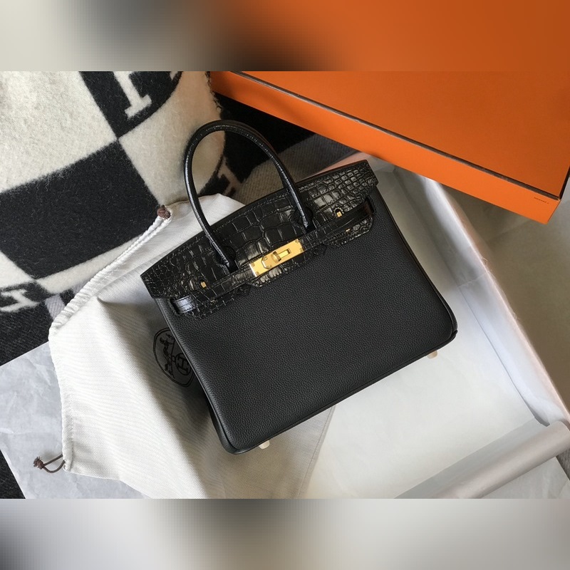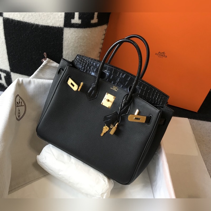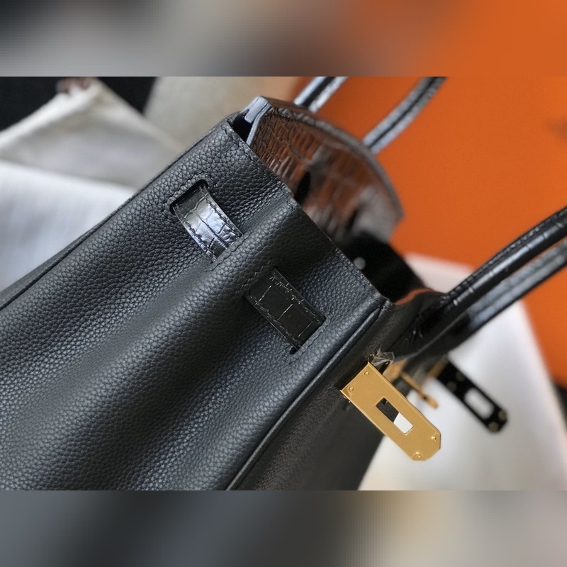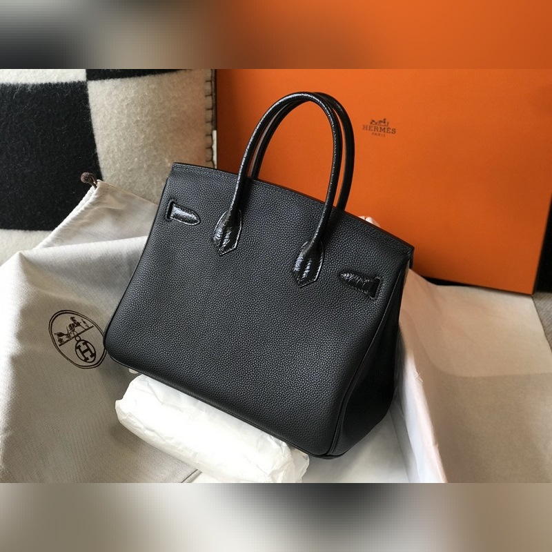 에르메스 블랙 나일 반짝이는 악어 가죽과 토고 가죽 토트백 블랙은 항상