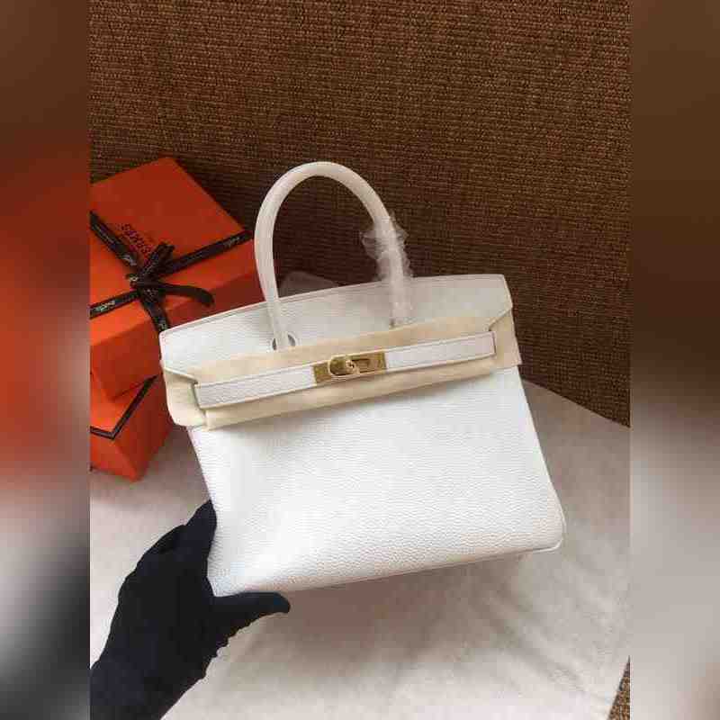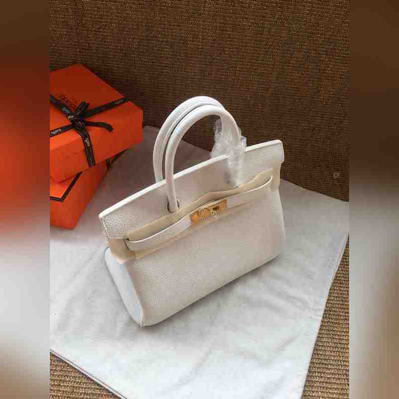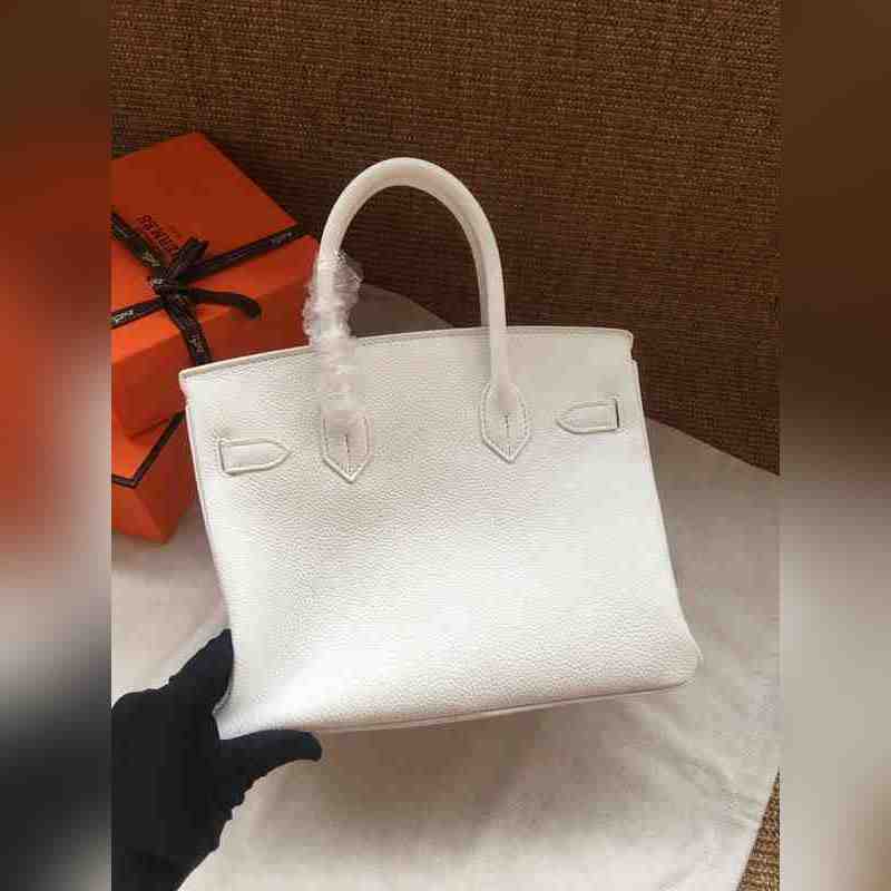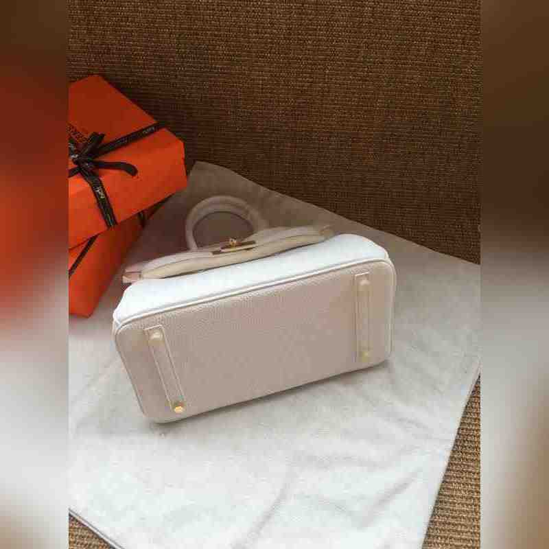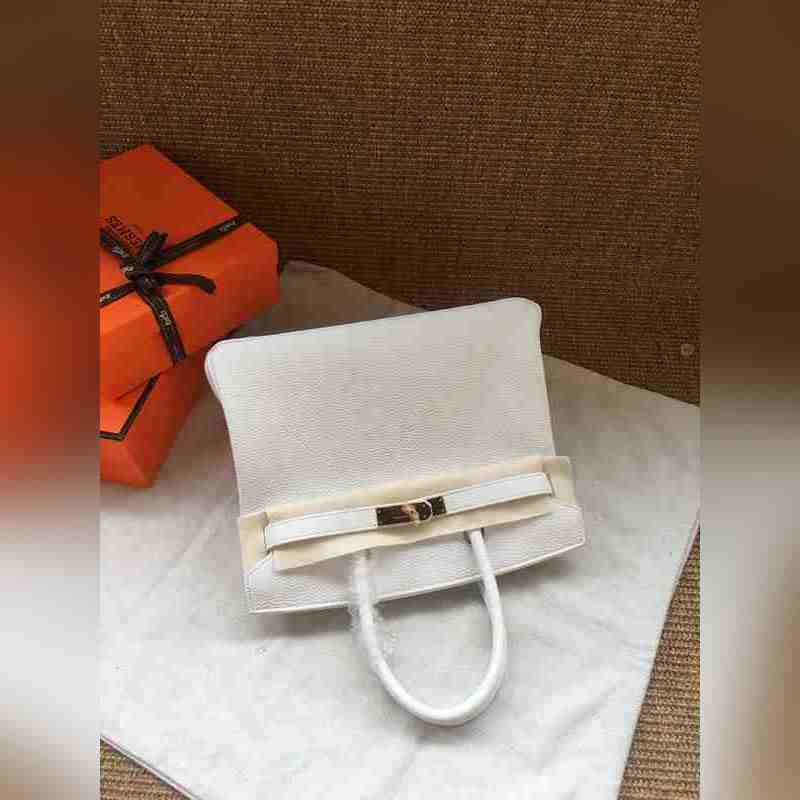 에르메스 플래티넘 25 30 토트백 순백색 골드와 실버 버클 수입 송아