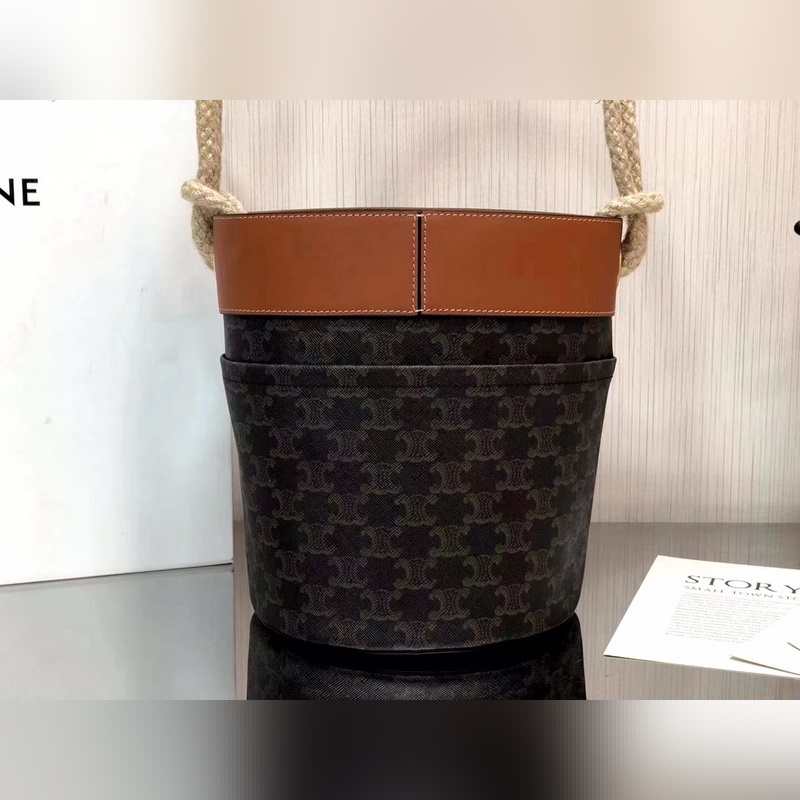 새로운 버킷 코드 로고 프린트 버킷 백 16868 19 X 23 X 19cm TRIOMPHE CANVAS 로고 프린트 소가죽 트리밍 패브릭 안감 숄더백 외부 플랫 포켓 2개 길이 29cm의 어깨 끈 No.: 196272BZK.04LU