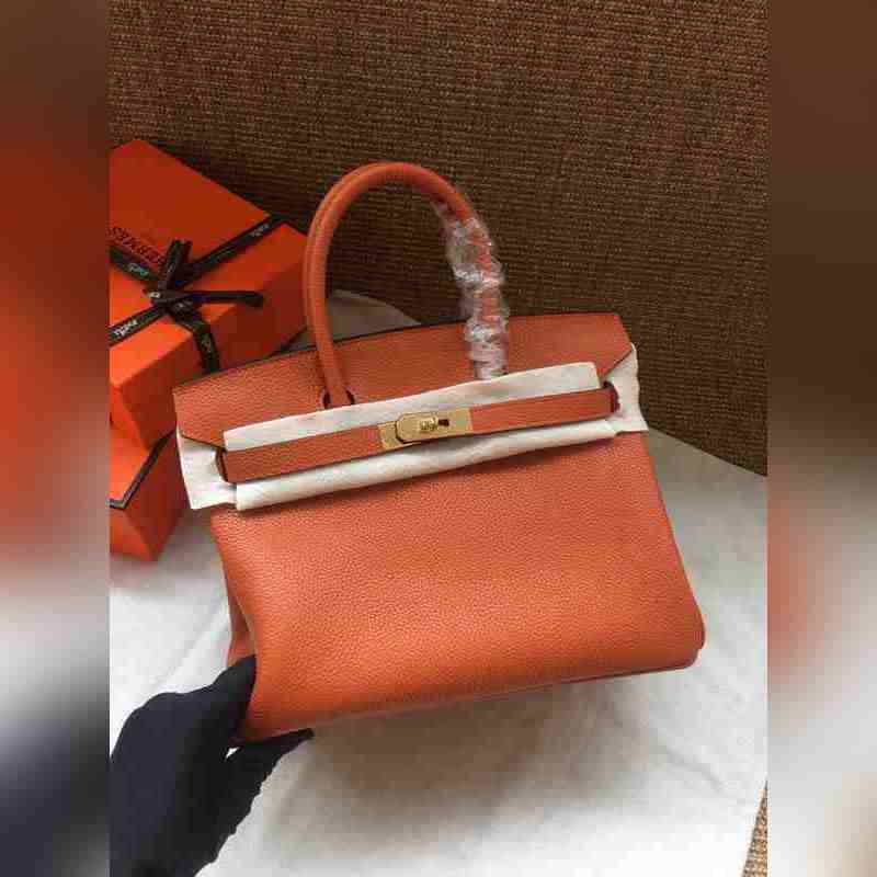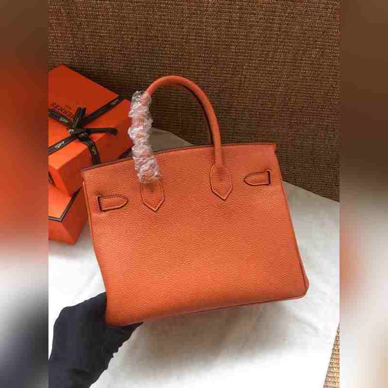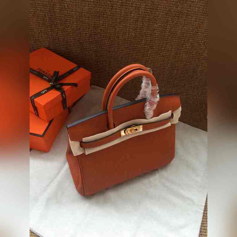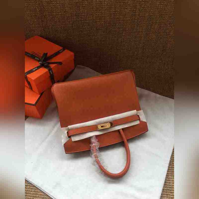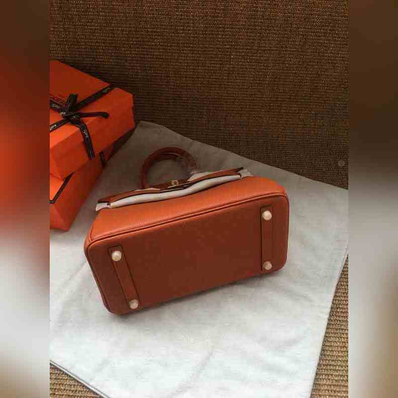 에르메스 플래티넘 25 30 토트 오렌지 골드와 실버 버클 수입 송아지