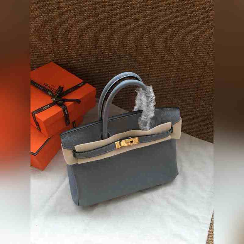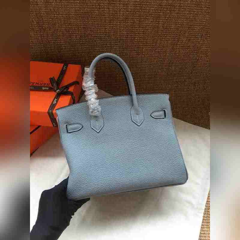 에르메스 플래티넘 25 30 토트백 야마한 블루 골드 및 실버 버클 수