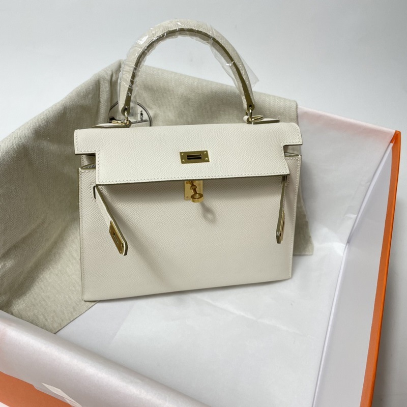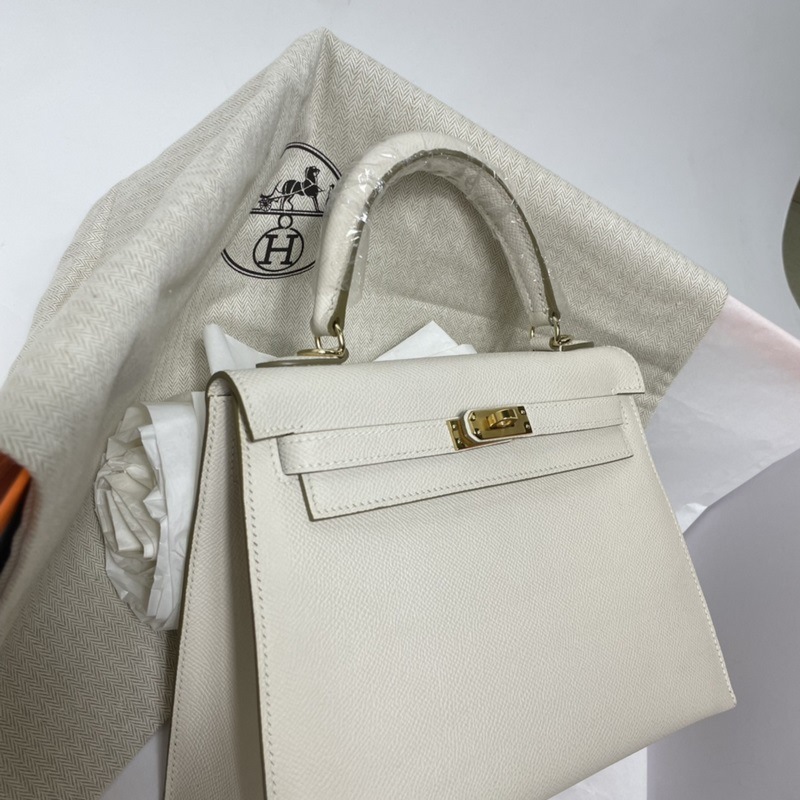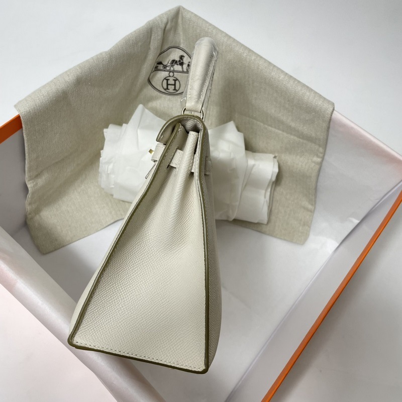 에르메스 KL 엡솜 가죽 토트백 밀크쉐이크 화이트 골드와 실버 버클