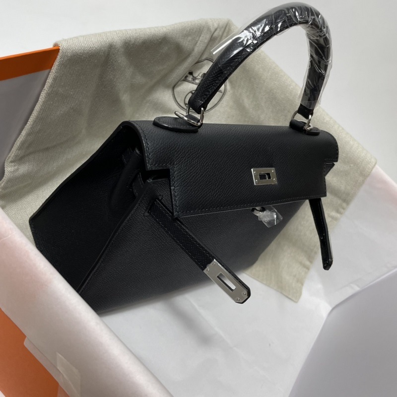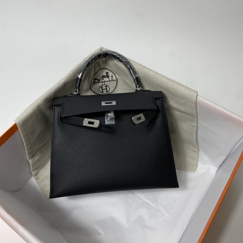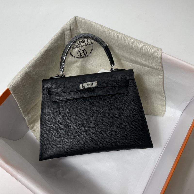 에르메스 KL 엡솜 가죽 핸드백 블랙 골드 및 실버 하드웨어 밀랍 실