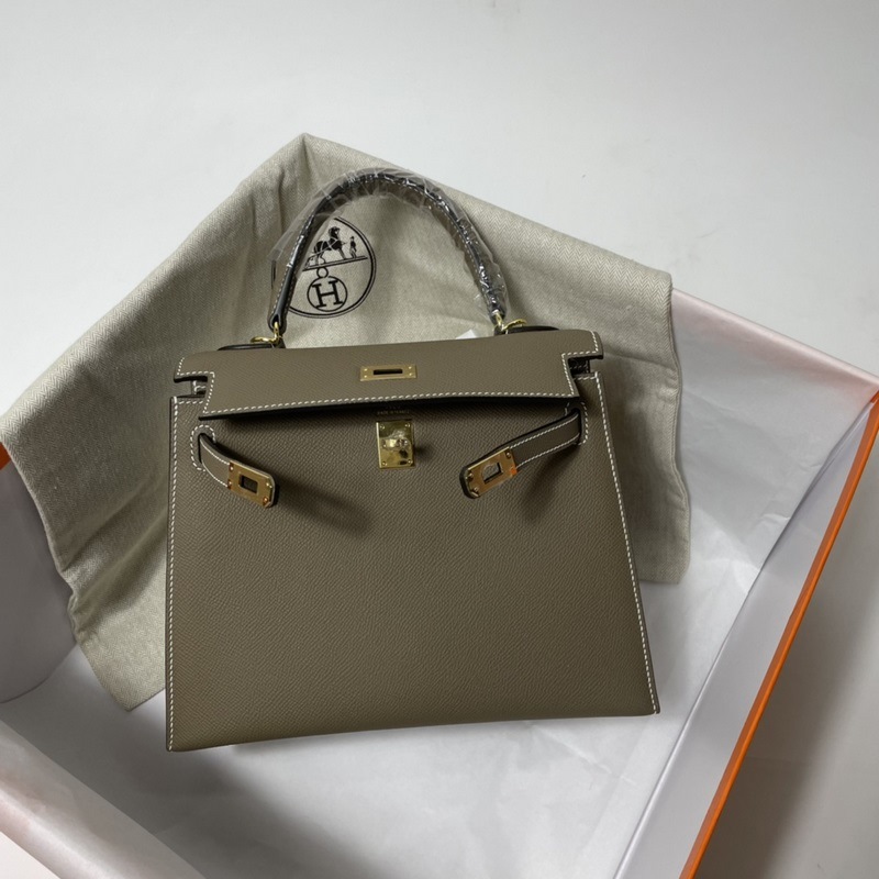 에르메스 KL 엡솜 가죽 핸드백 코끼리 회색 금색과 은색 하드웨어 밀