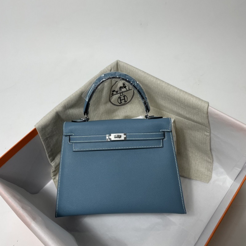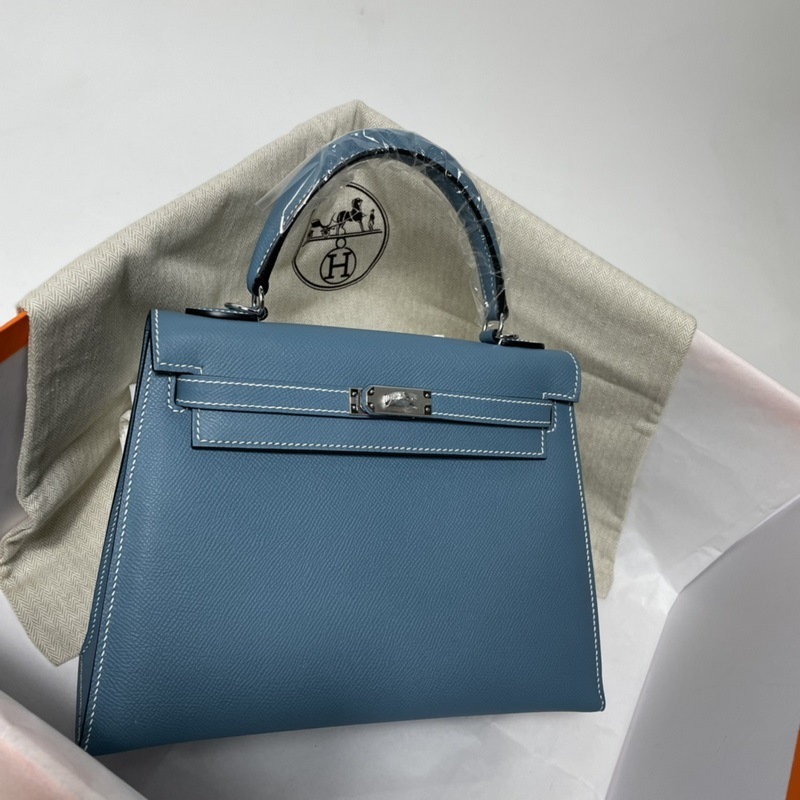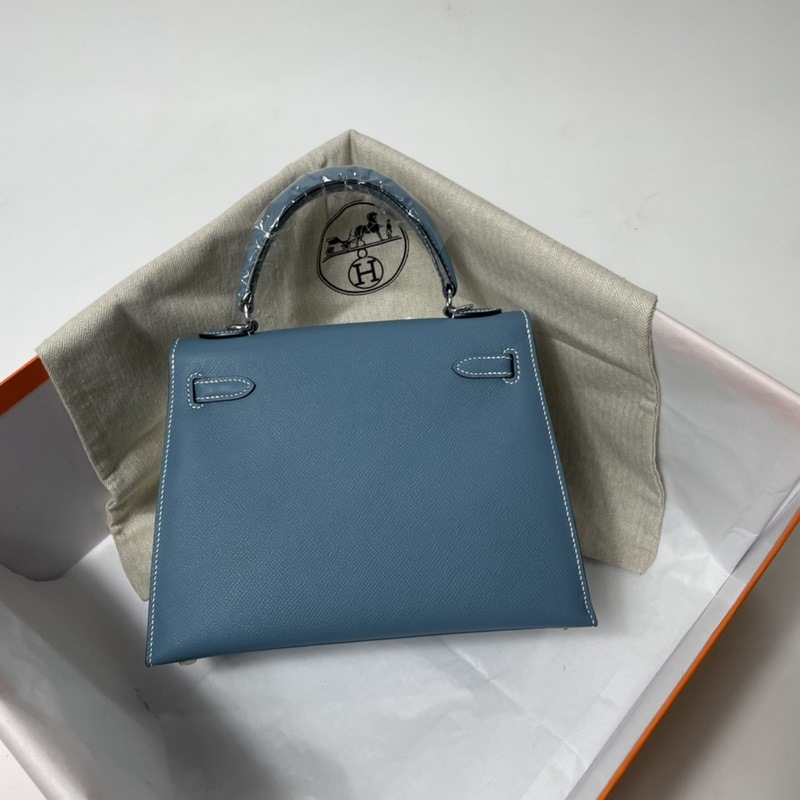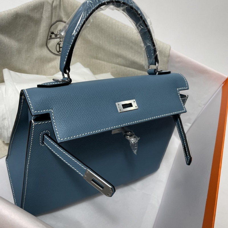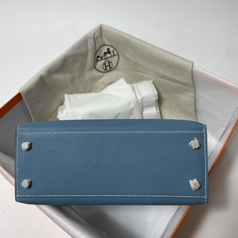 에르메스 KL 엡솜 가죽 핸드백 데님 블루 금색과 은색 버클 밀랍 실
