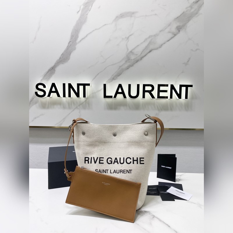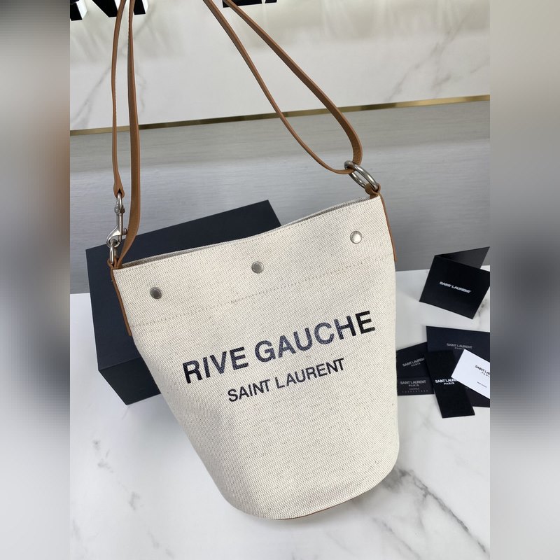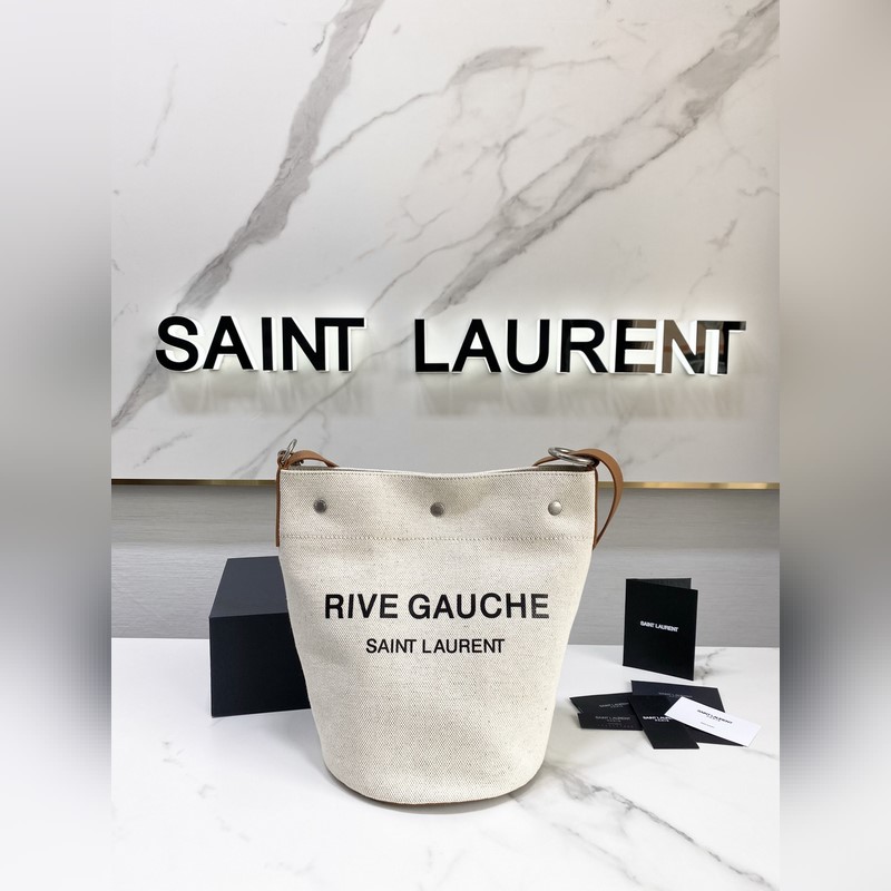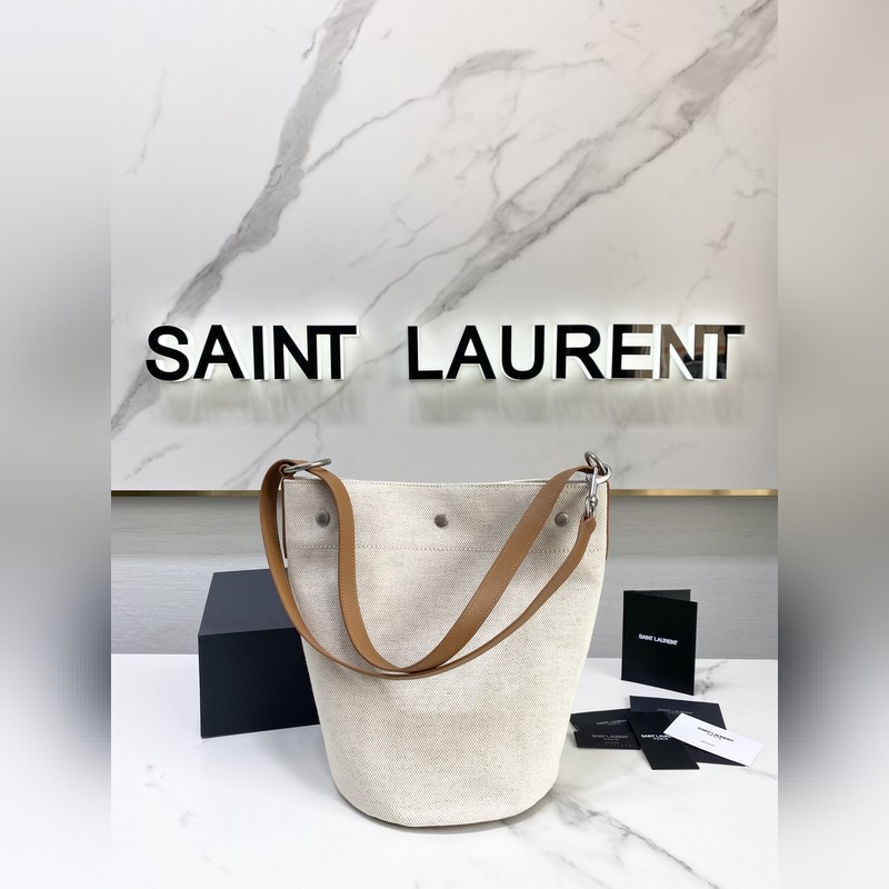 SAlNT LAURENT 새로운 캔버스 버킷 백. 용량이 없습니다. 가방 안쪽에 라이너가 있어 한쪽 어깨에 메거나 몸에 걸칠 수 있어 캐주얼하고 편안한 느낌을 줍니다. 크기: 31 x 20 x 27.5cm. 코드 669299