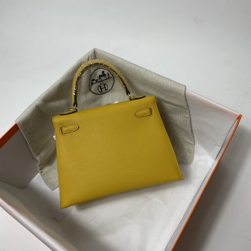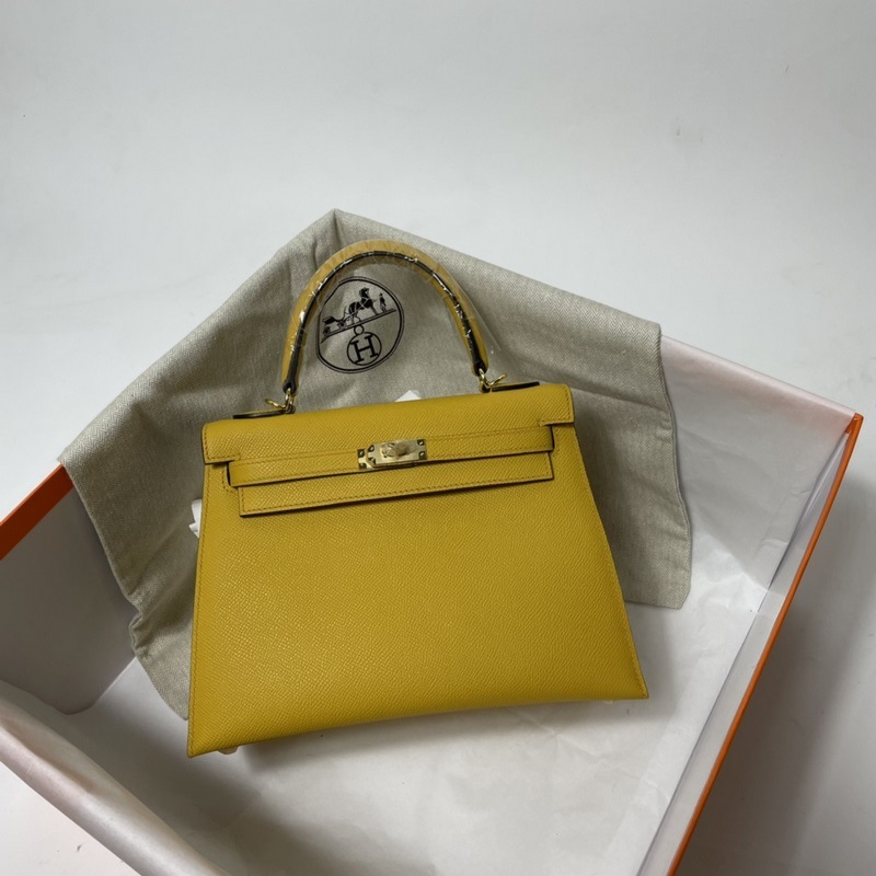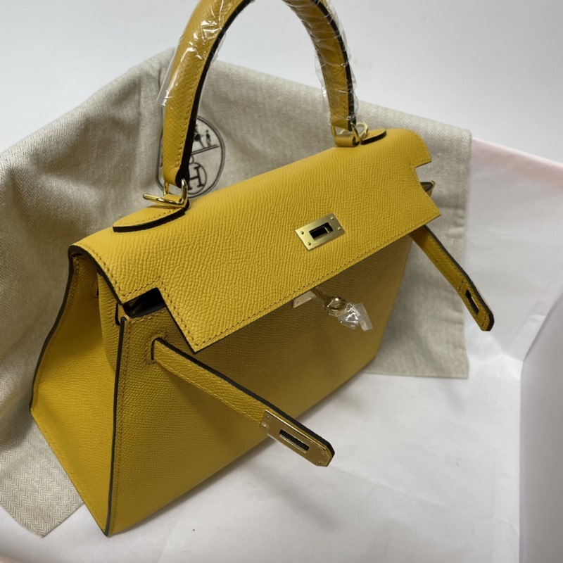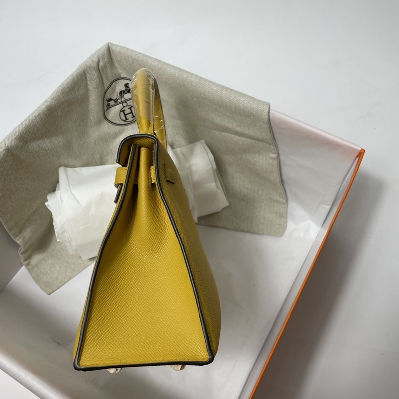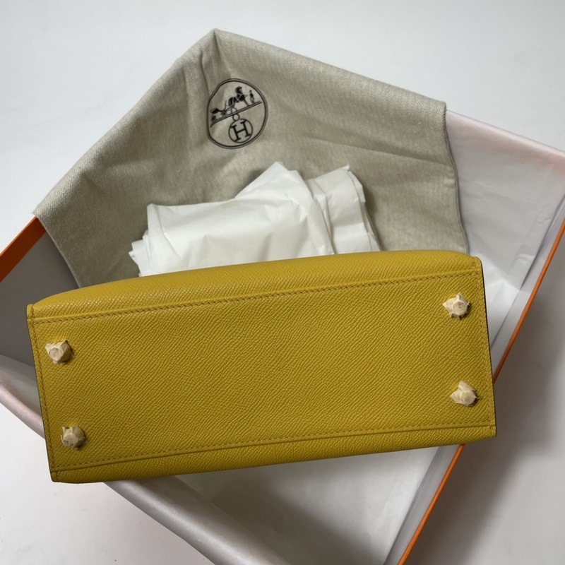 에르메스 KL 엡솜 가죽 핸드백 앰버 골드와 실버 버클 밀랍 실로 수작