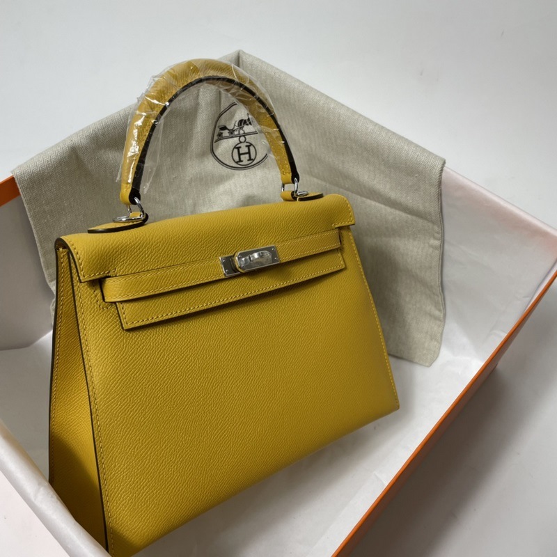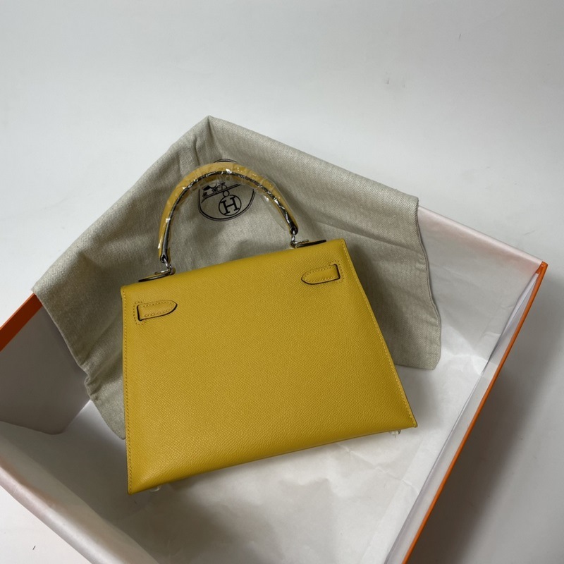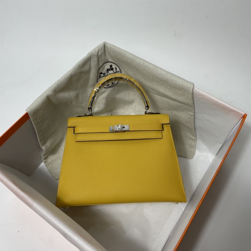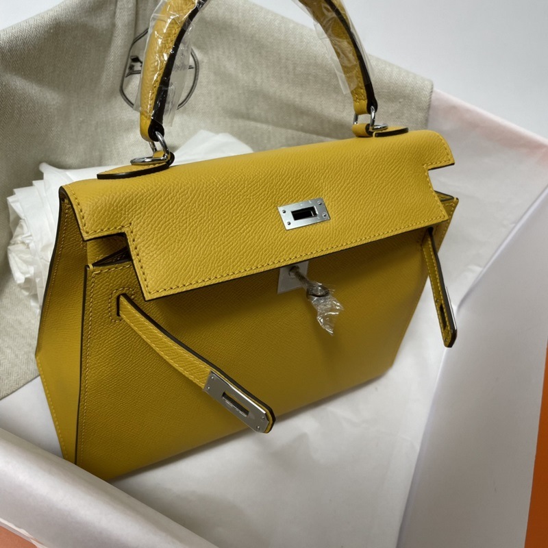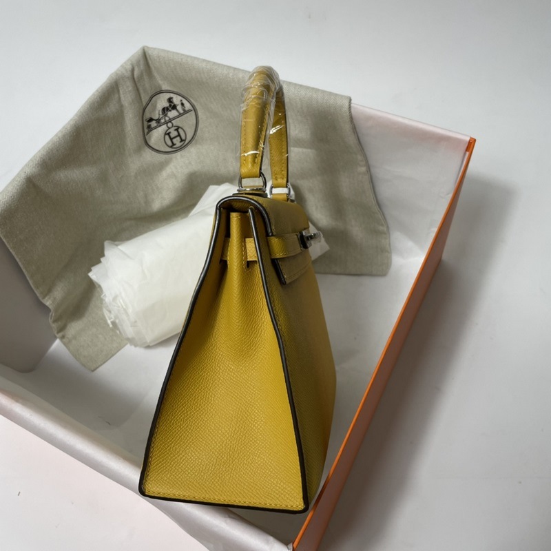 에르메스 KL 엡솜 가죽 핸드백 앰버 골드와 실버 버클 밀랍 실로 수작