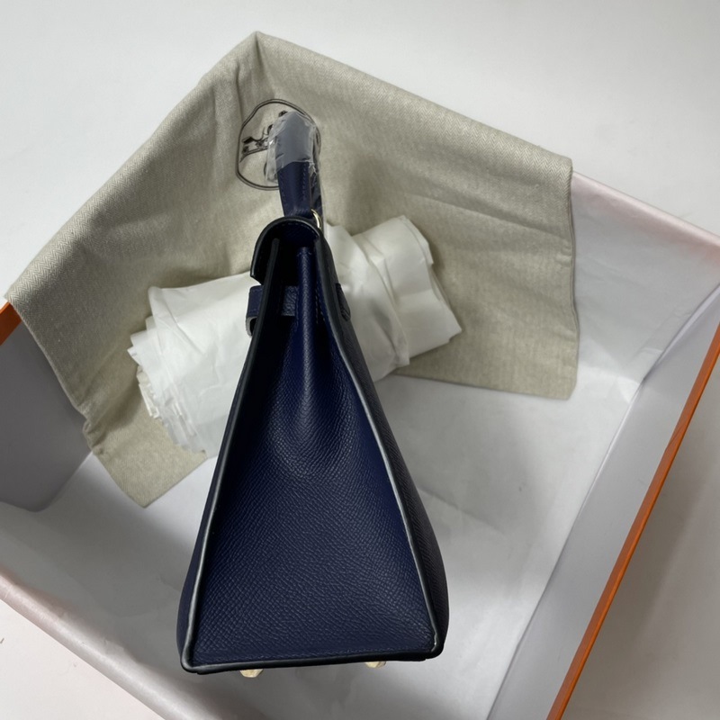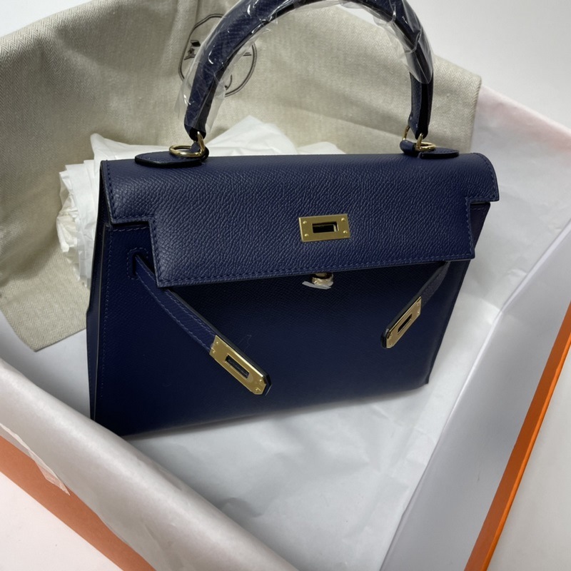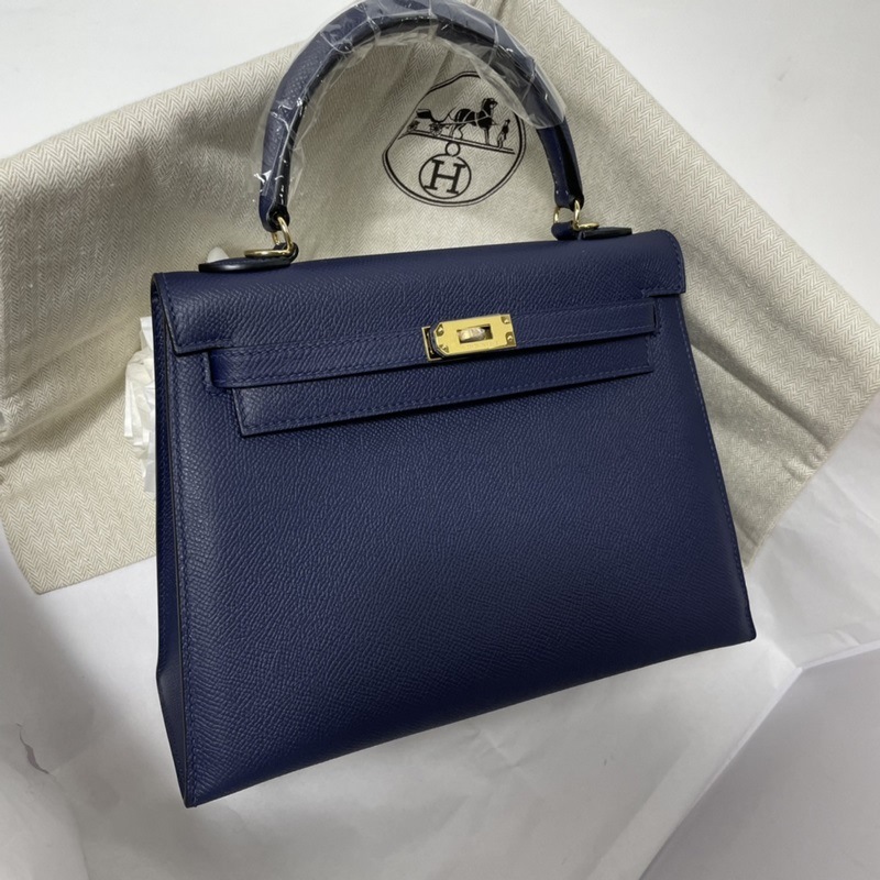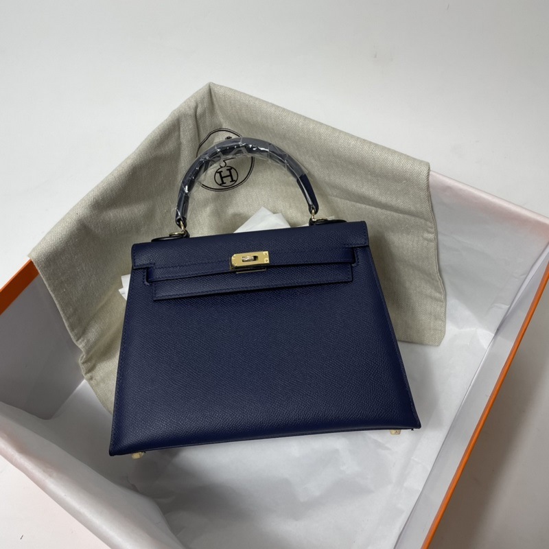 에르메스 KL 엡솜 가죽 핸드백 로열 블루 컬러에 금색과 은색 하드웨어