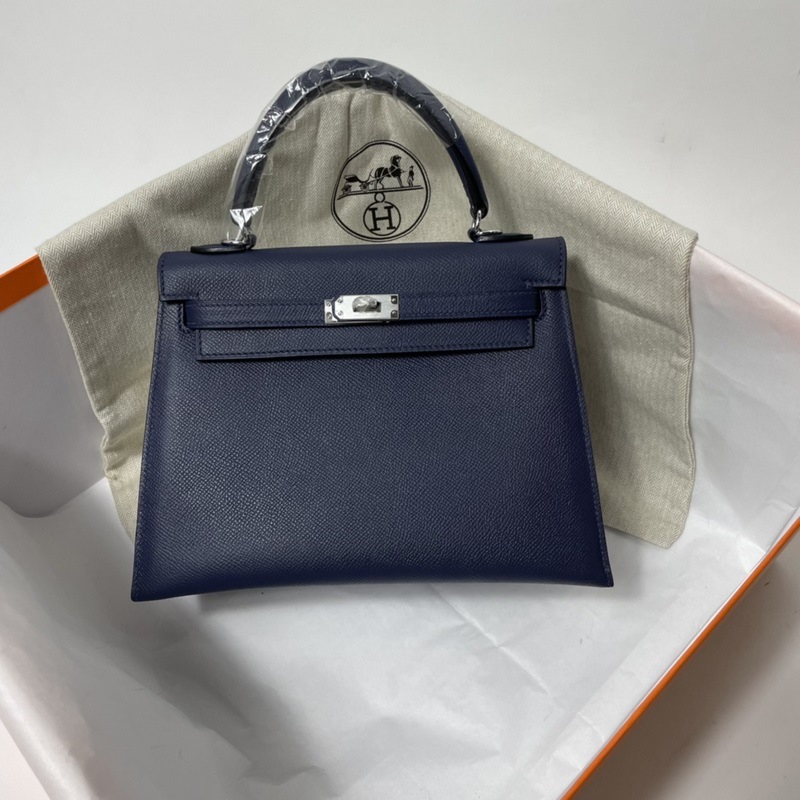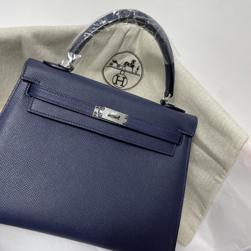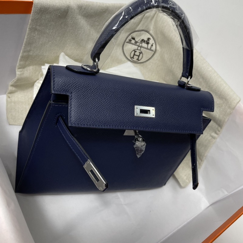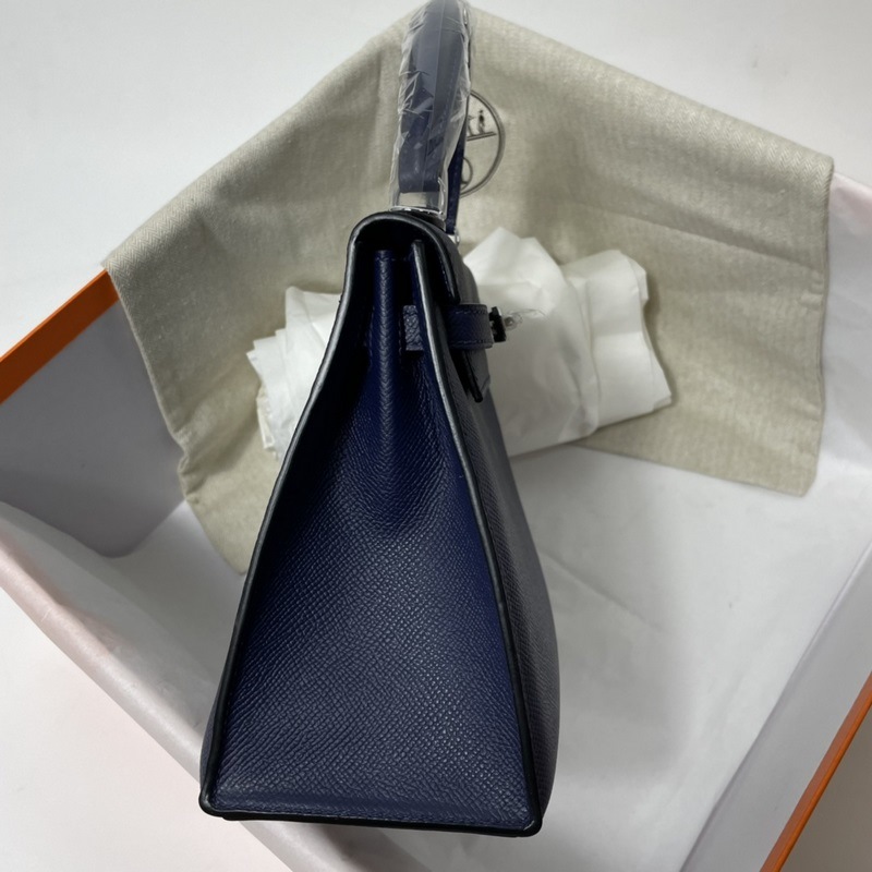 에르메스 KL 엡솜 가죽 핸드백 로열 블루 컬러에 금색과 은색 하드웨어