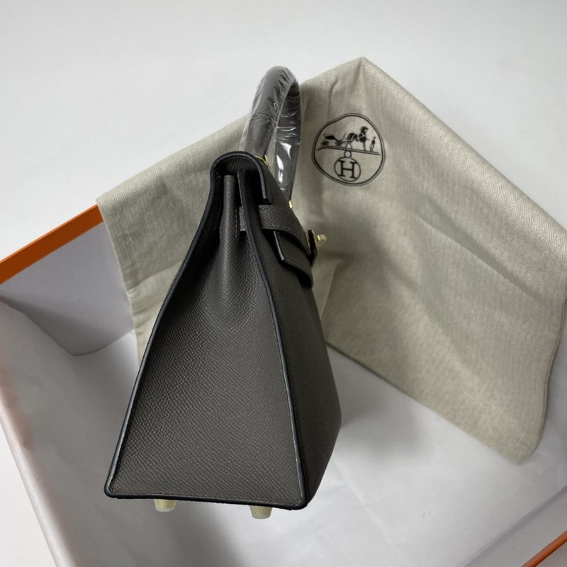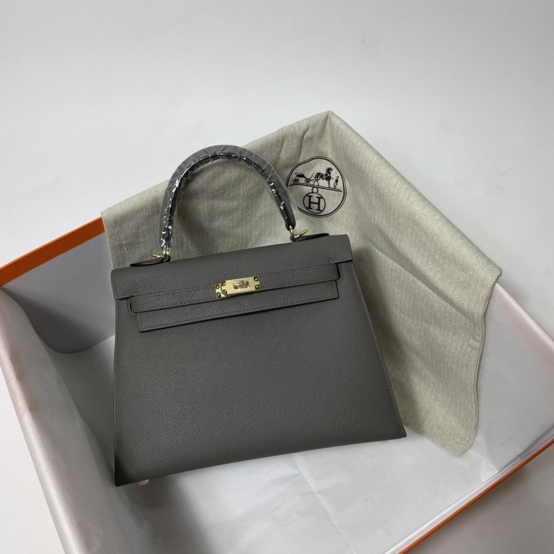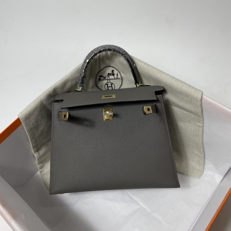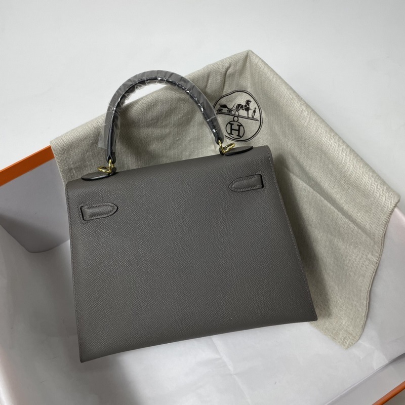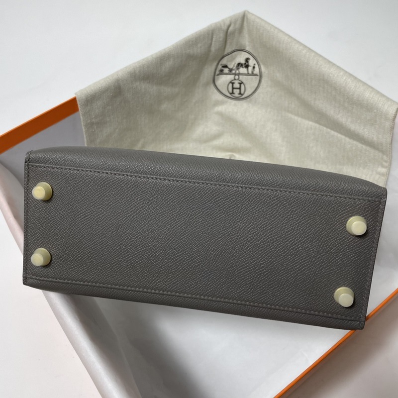 에르메스 KL 엡솜 가죽 핸드백 페우터 그레이 골드와 실버 하드웨어 밀랍