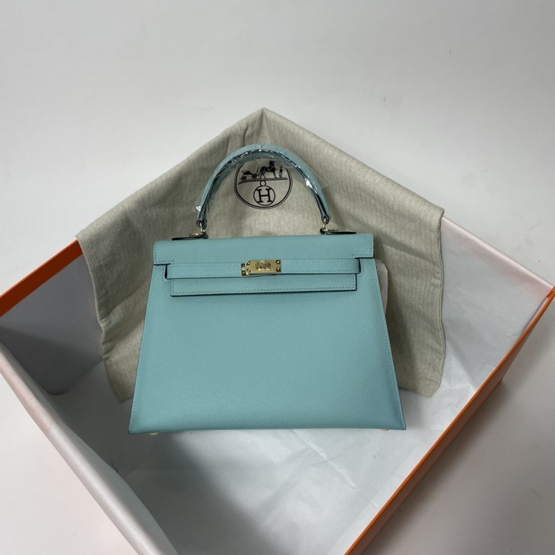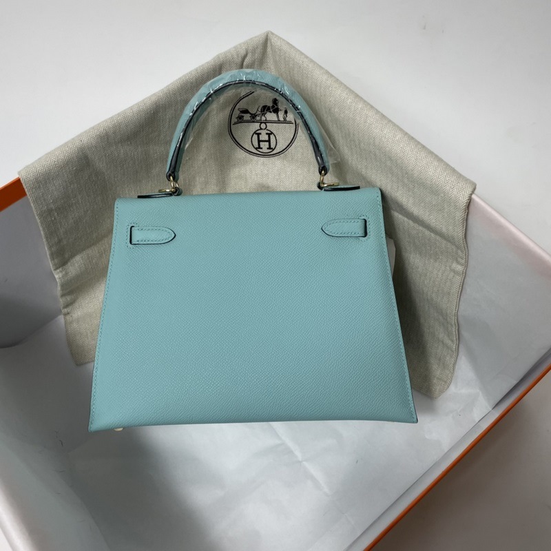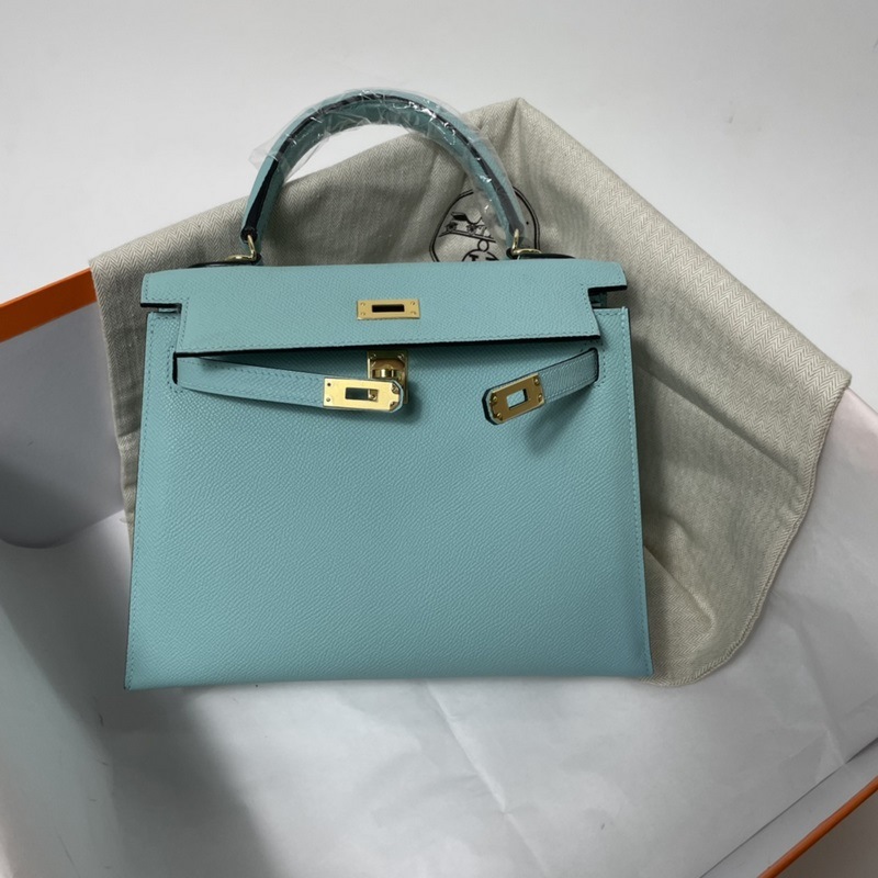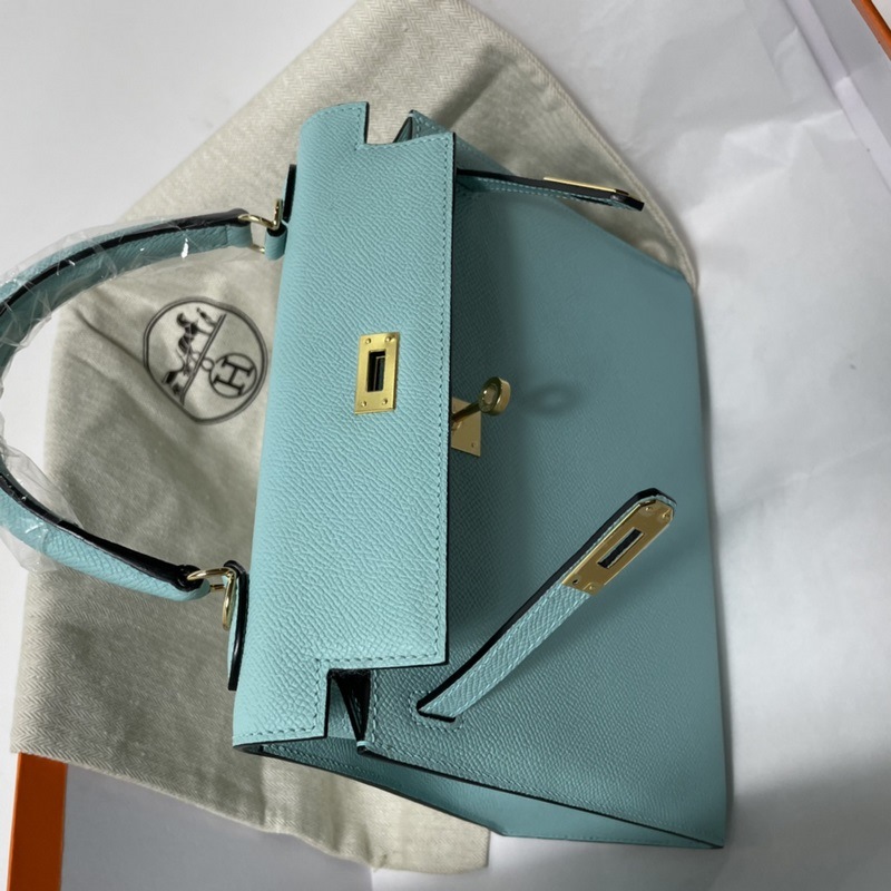 에르메스 KL 엡솜 가죽 핸드백 마카롱 블루 골드와 실버 버클 밀랍 실로