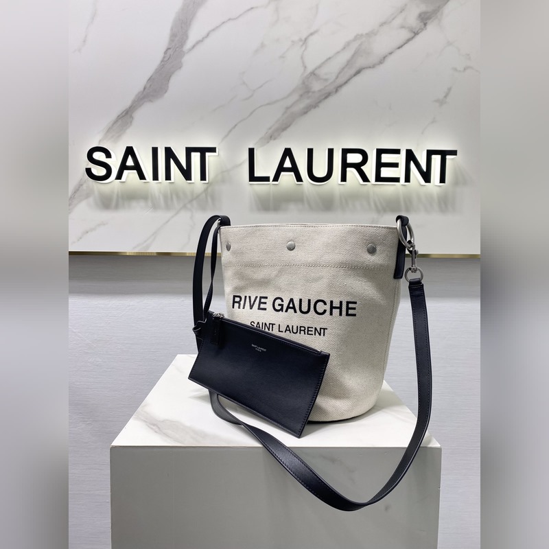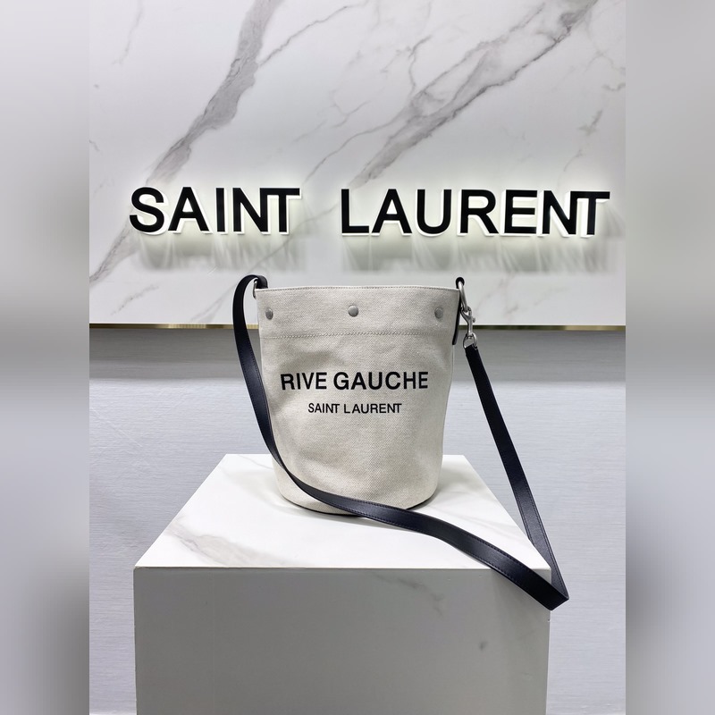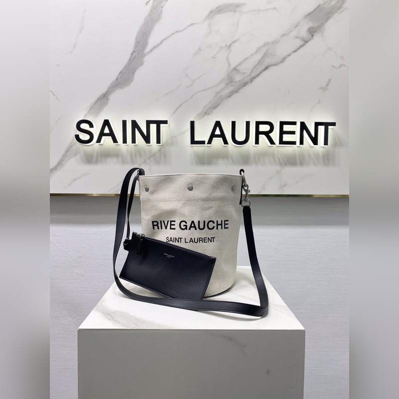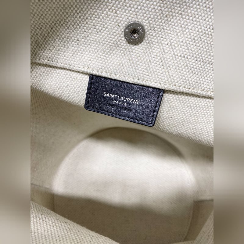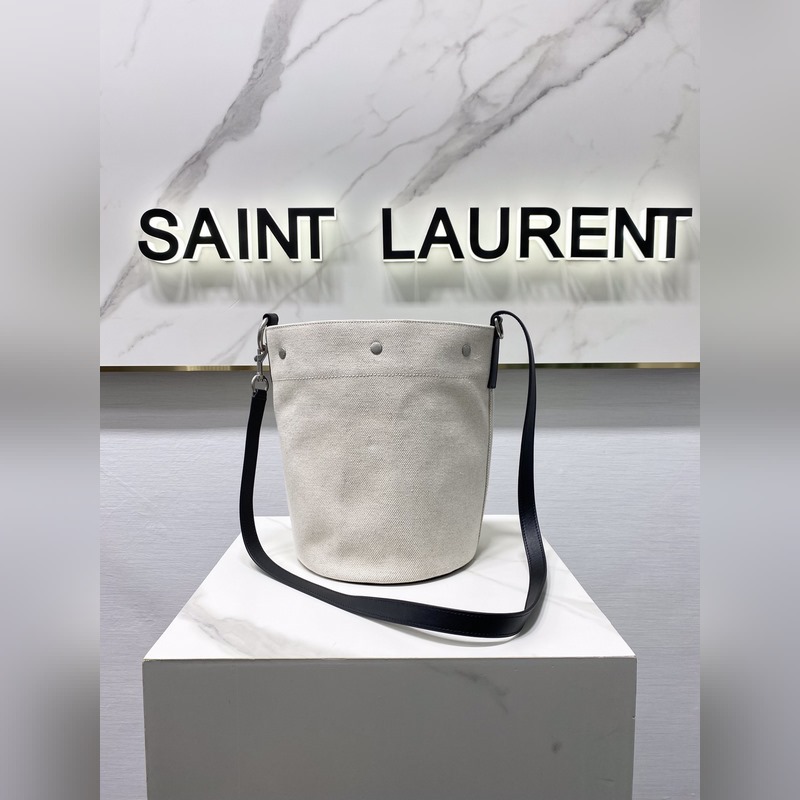 SAlNT LAURENT 새로운 캔버스 버킷 백. 용량이 없습니다. 가방 안쪽에 라이너가 있어 한쪽 어깨에 메거나 몸에 걸칠 수 있어 캐주얼하고 편안한 느낌을 줍니다. 크기: 31 x 20 x 27.5cm. 코드 669299
