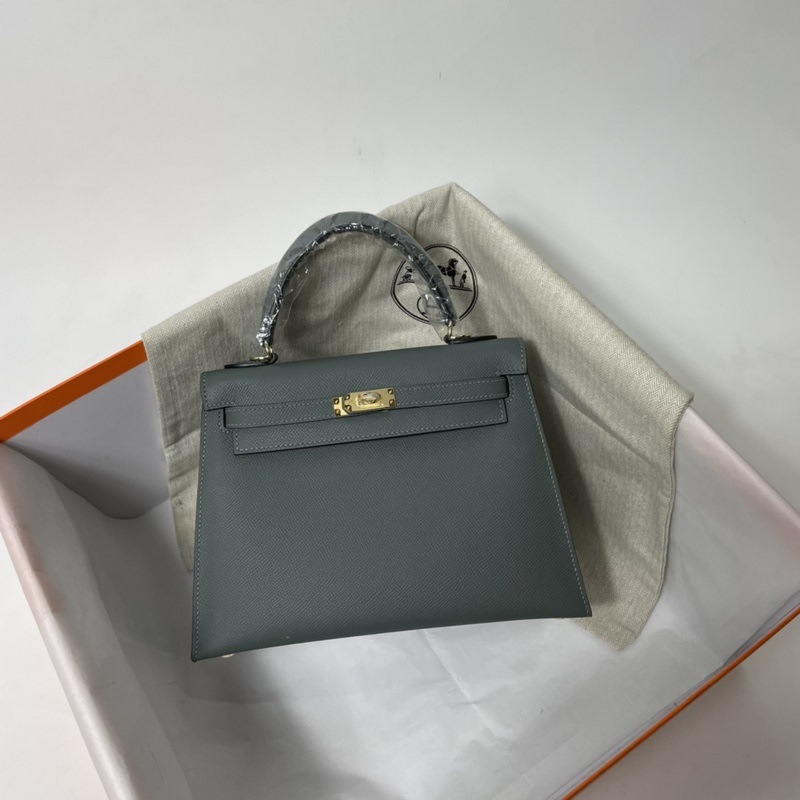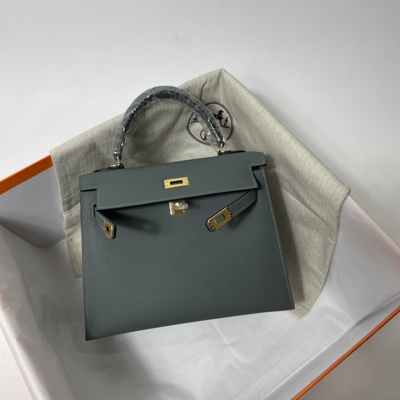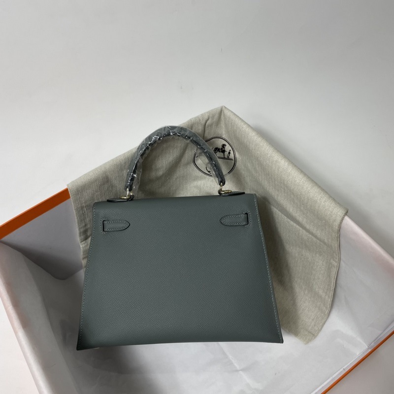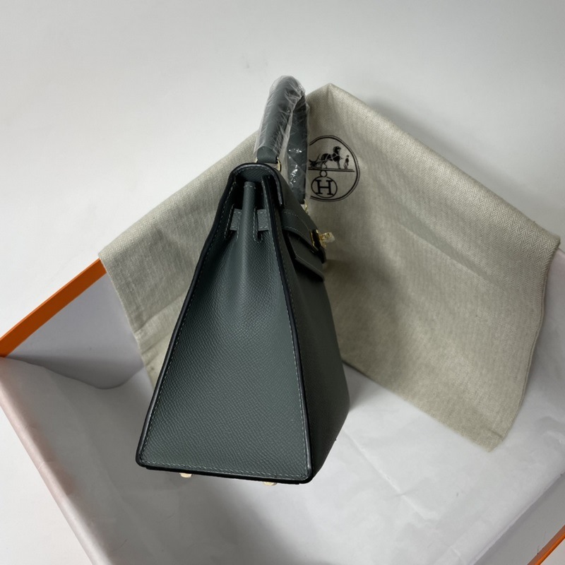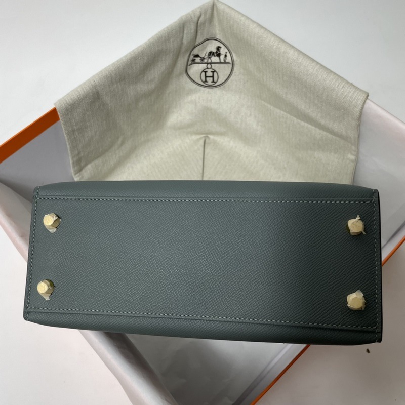 에르메스 KL 엡솜 가죽 핸드백 아몬드 그린에 금색과 은색 하드웨어 밀