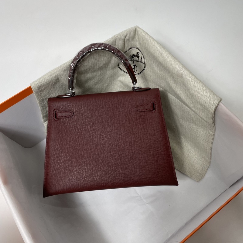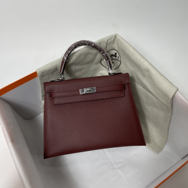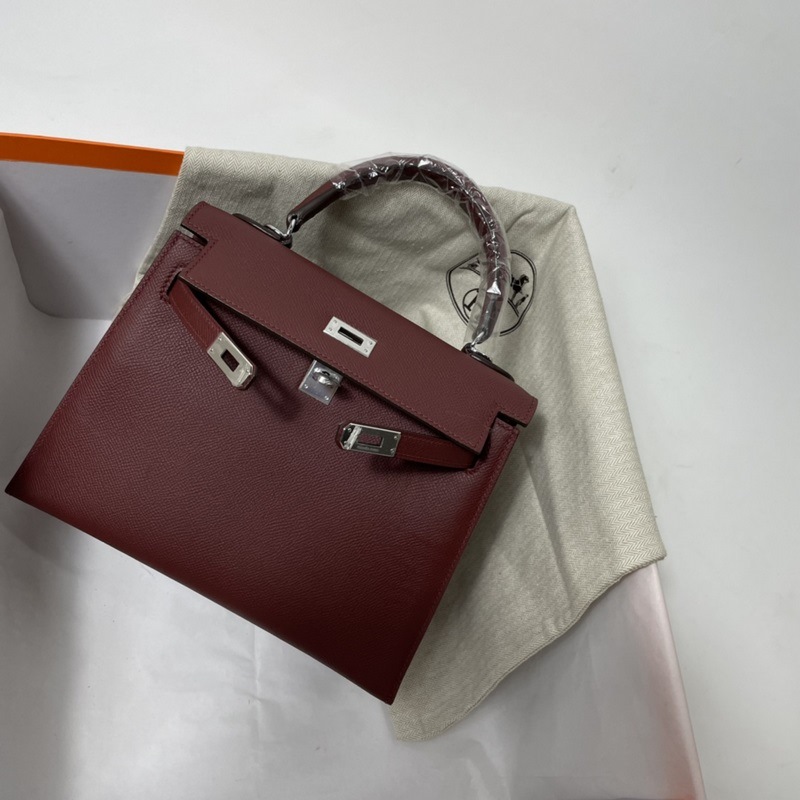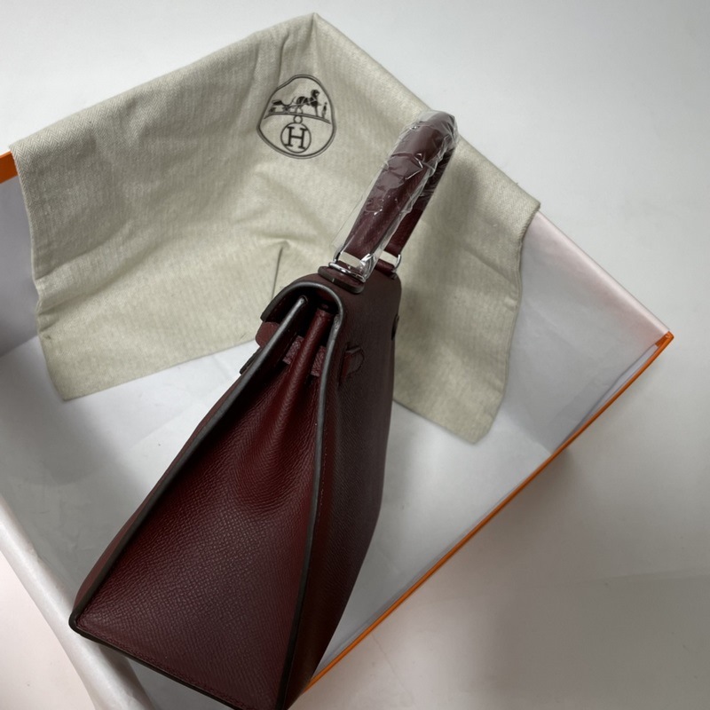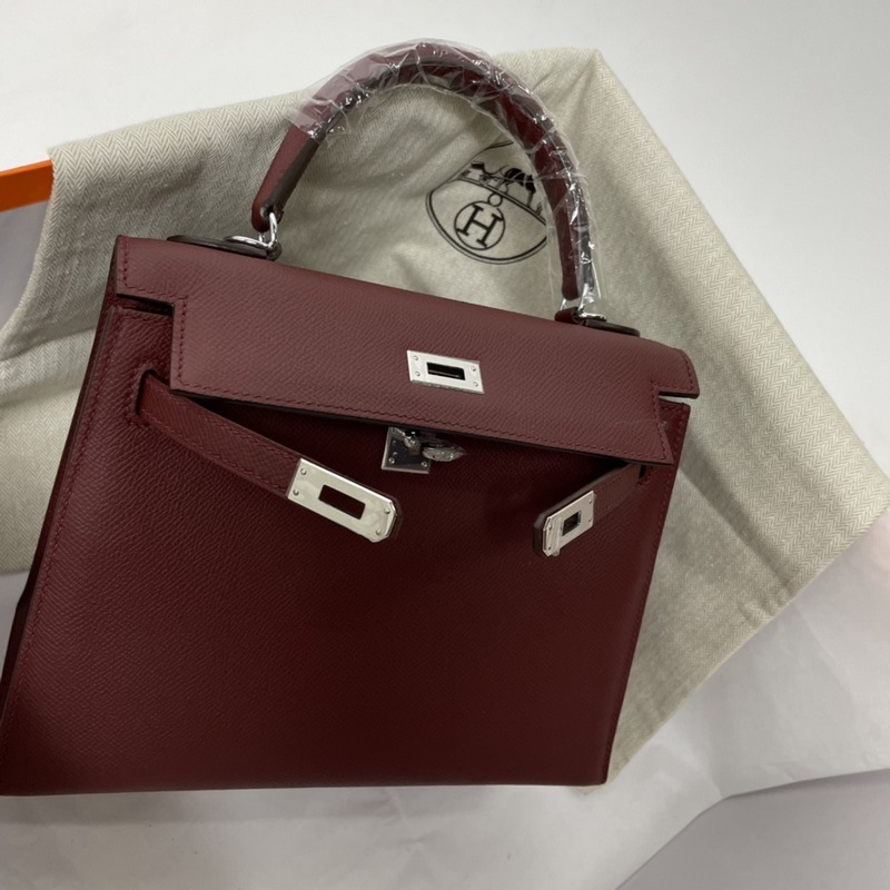 에르메스 KL 엡솜 가죽 핸드백 버건디 골드와 실버 하드웨어 밀랍 실로