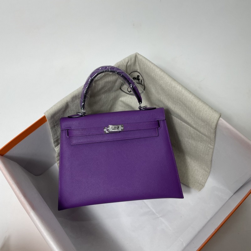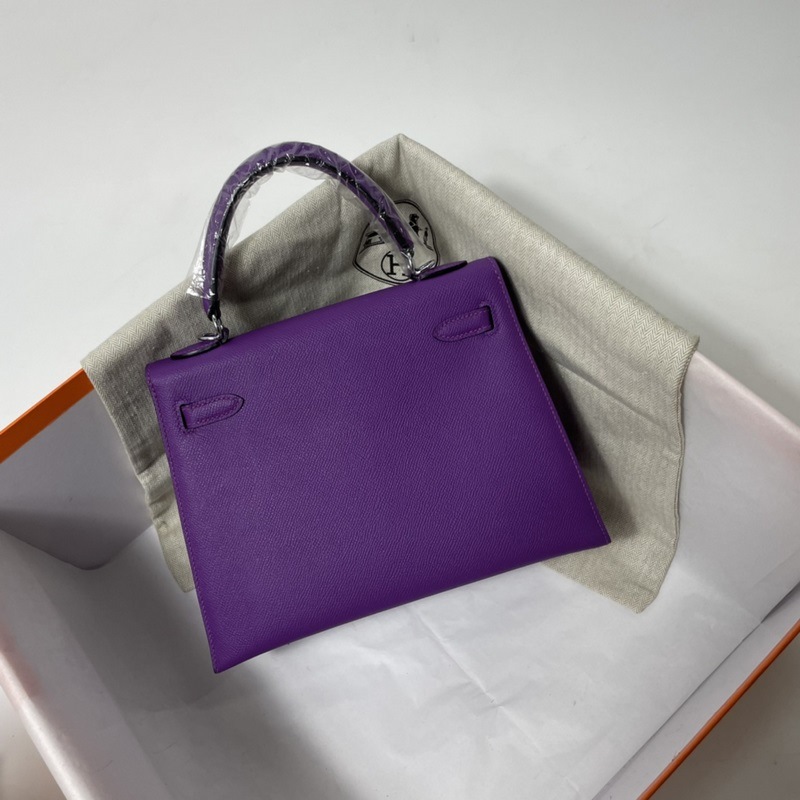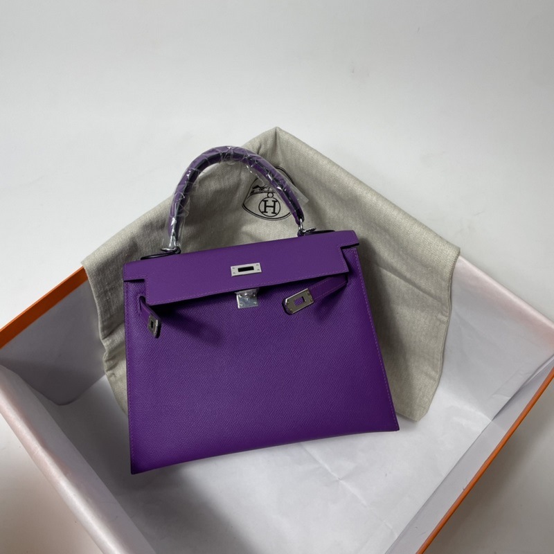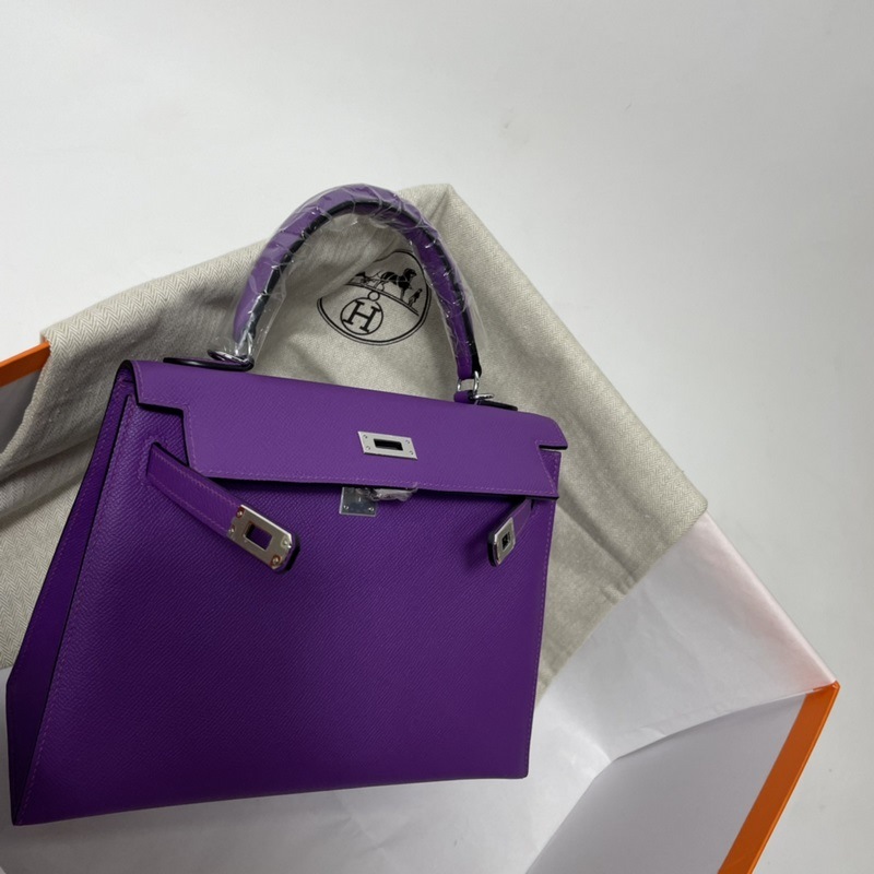 에르메스 KL 엡솜 가죽 핸드백 보라색과 금색 금속 장식 밀랍 실로 수