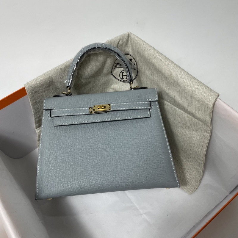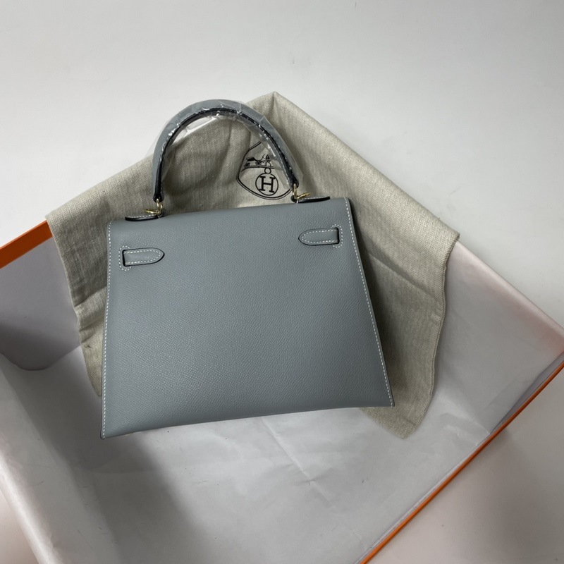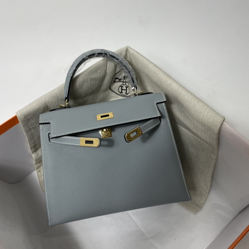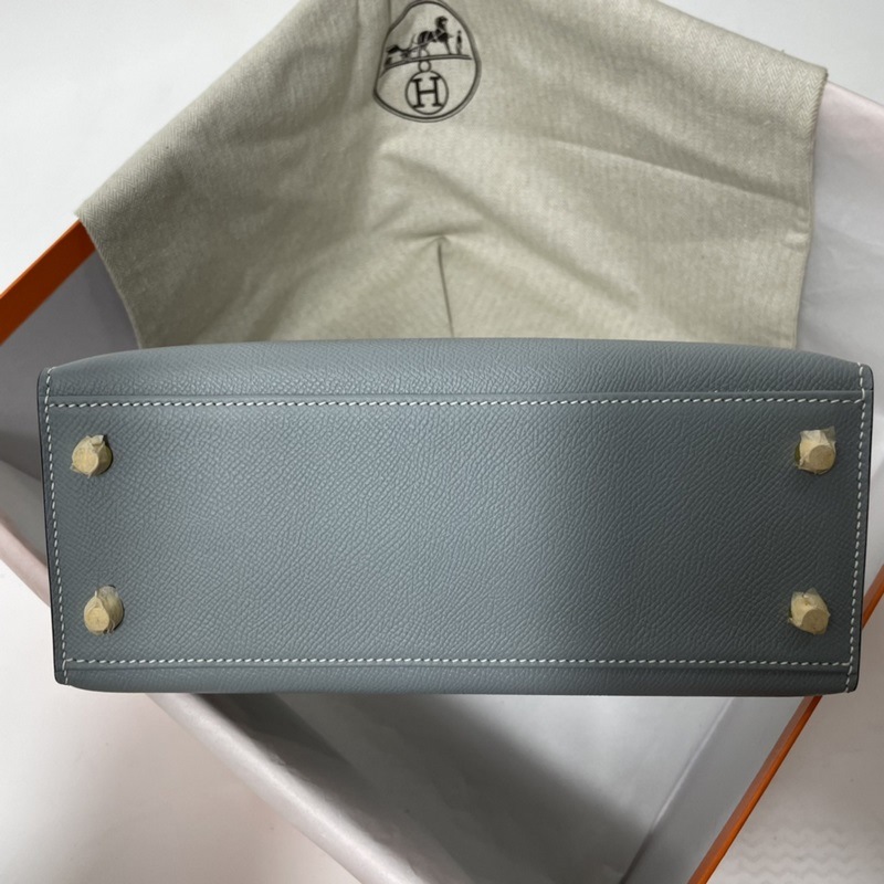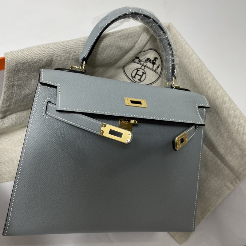 에르메스 KL 엡솜 가죽 핸드백 리넨 블루에 금색과 은색 하드웨어 밀랍