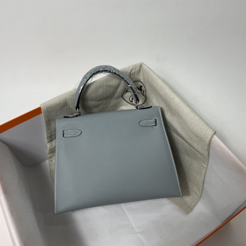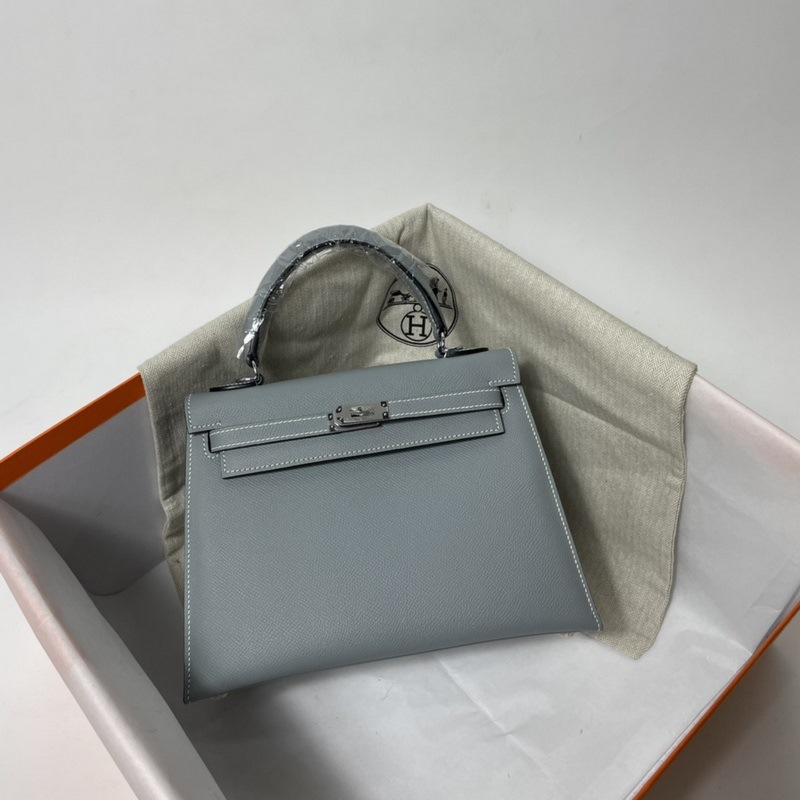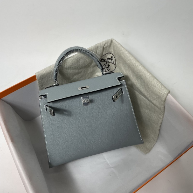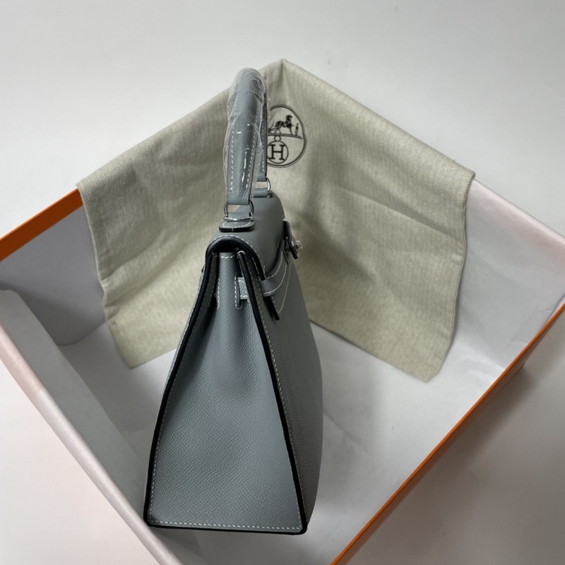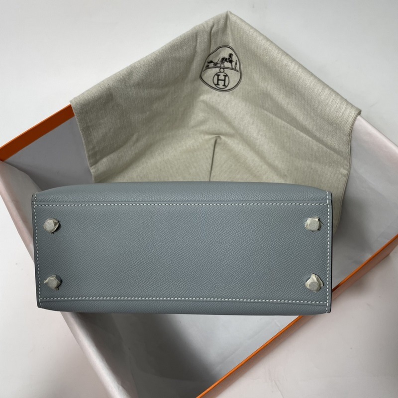 에르메스 KL 엡솜 가죽 핸드백 리넨 블루에 금색과 은색 하드웨어 밀랍