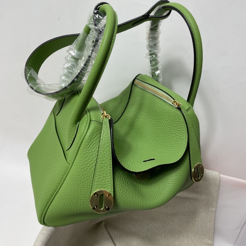 에르메스 수입 TC 소가죽 토트백 아보카도 그린에 금색과 은색 단추 낮은