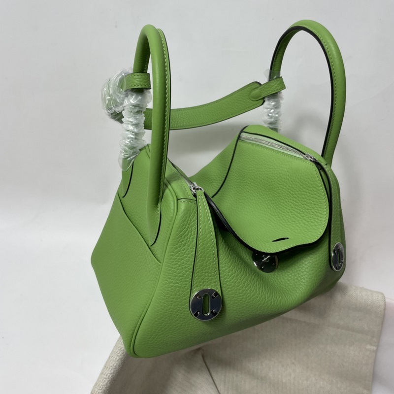 에르메스 수입 TC 소가죽 토트백 아보카도 그린에 금색과 은색 단추 낮은
