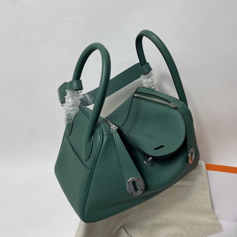 에르메스 수입 TC 소가죽 토트백 페코크 그린에 금색과 은색 단추 낮은
