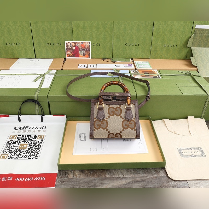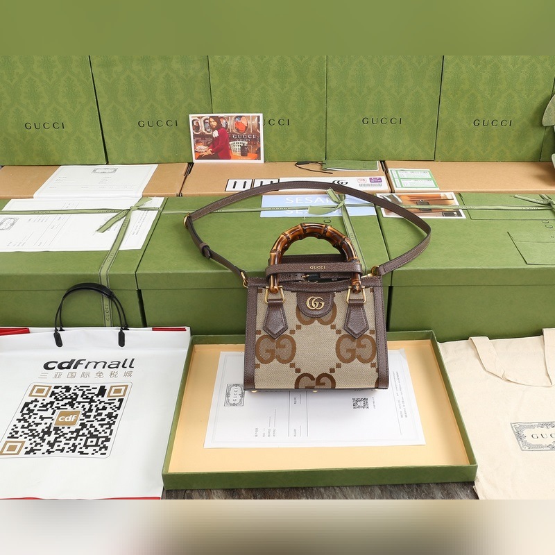 GUCCI 다이아나 뱀부 숄더백 번호: 655661 빅 G 브라운 다이아
