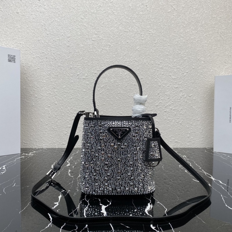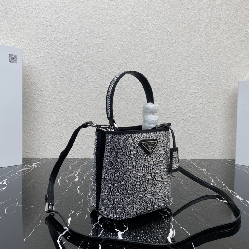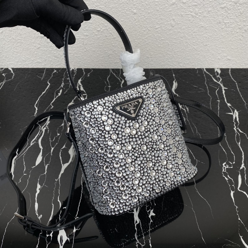 [최고의 정통 싱글] 2023년 신상 스타 버킷백 1BA373 이 우아한 프라다 파니에 핸드백은 모조 크리스탈로 덮여 있어 보석처럼 빛납니다. 탈착식 숄더 스트랩 디자인으로 원하는 대로 스타일을 쉽게 바꿀 수 있으며 금속 로고 장식 이름표가 개성을 더해줍니다. 너무 예뻐서 겨울 필수 아이템이고 아기들이 너무 예뻐서 사랑스럽습니다. 지금 구매하세요. 크기: 15*16*9.5cm
