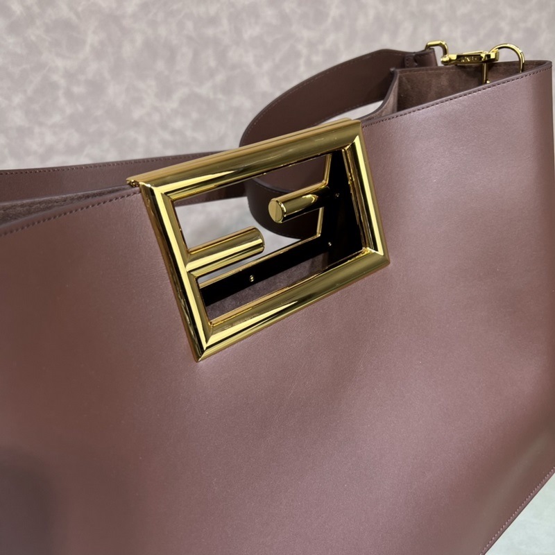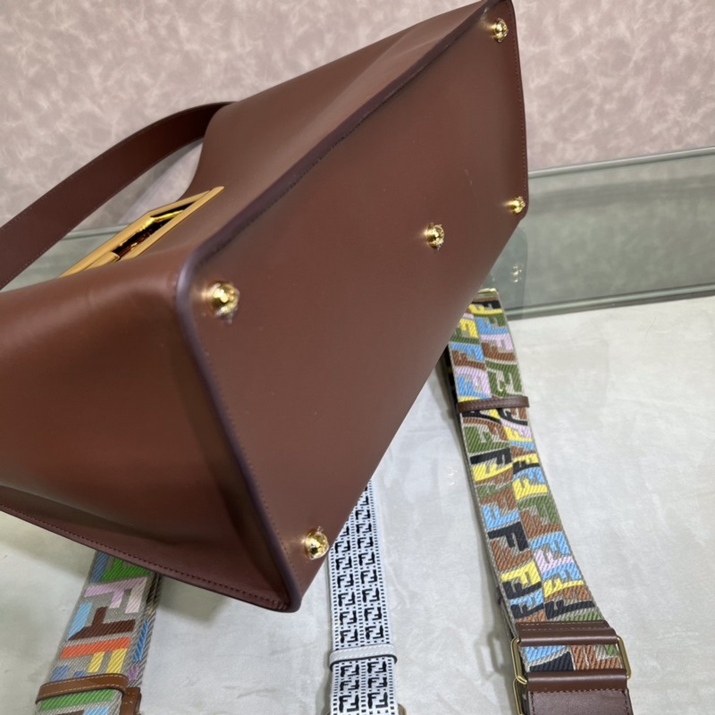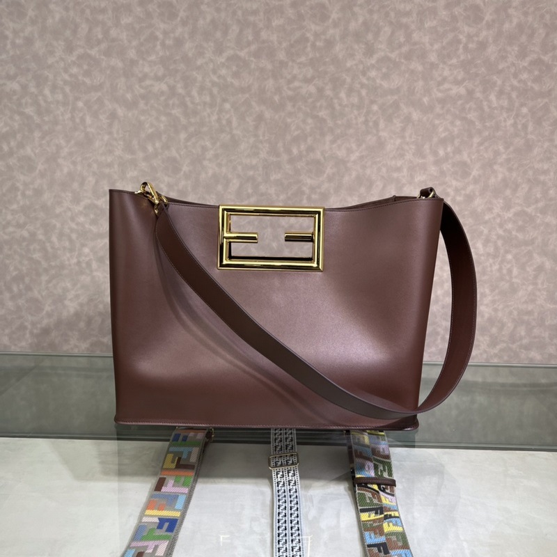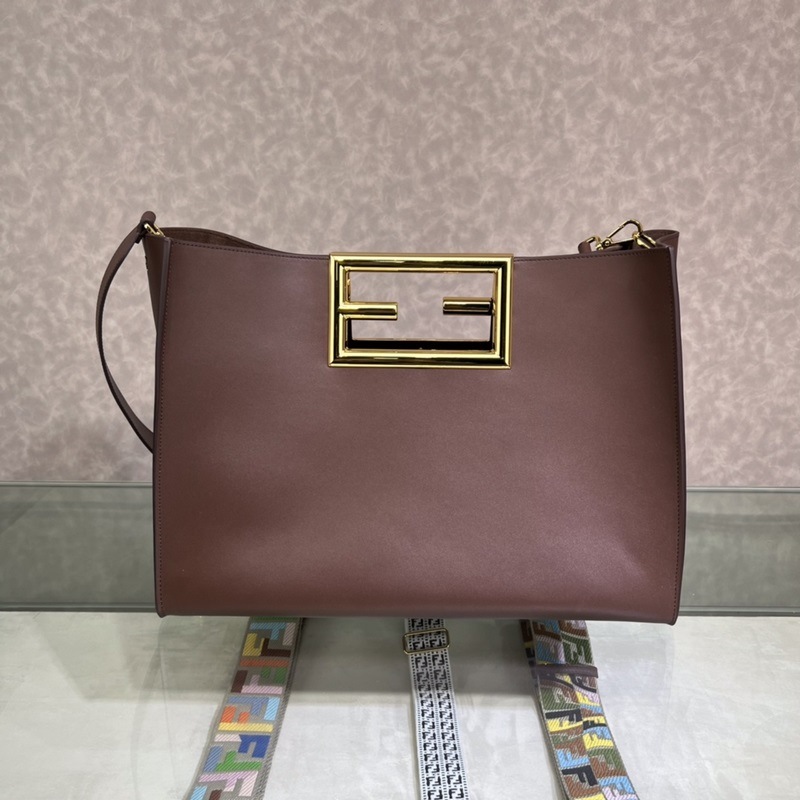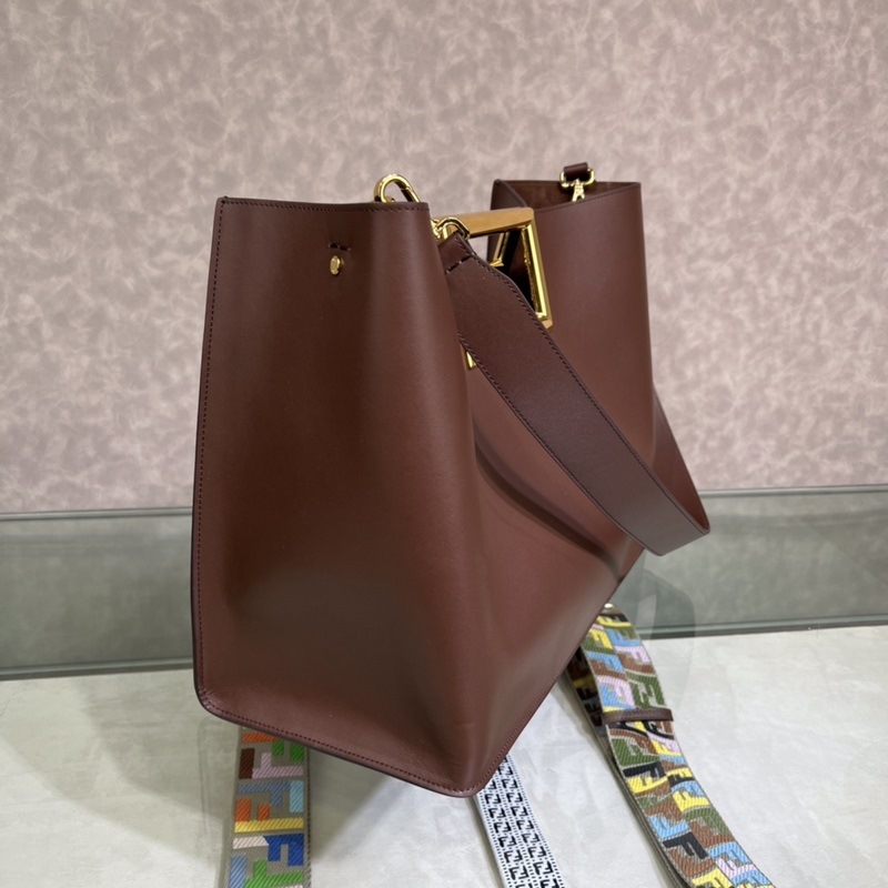 FENDI Way 대형 갈색-적색 핸드백 모델 051L 송아지 가죽 소