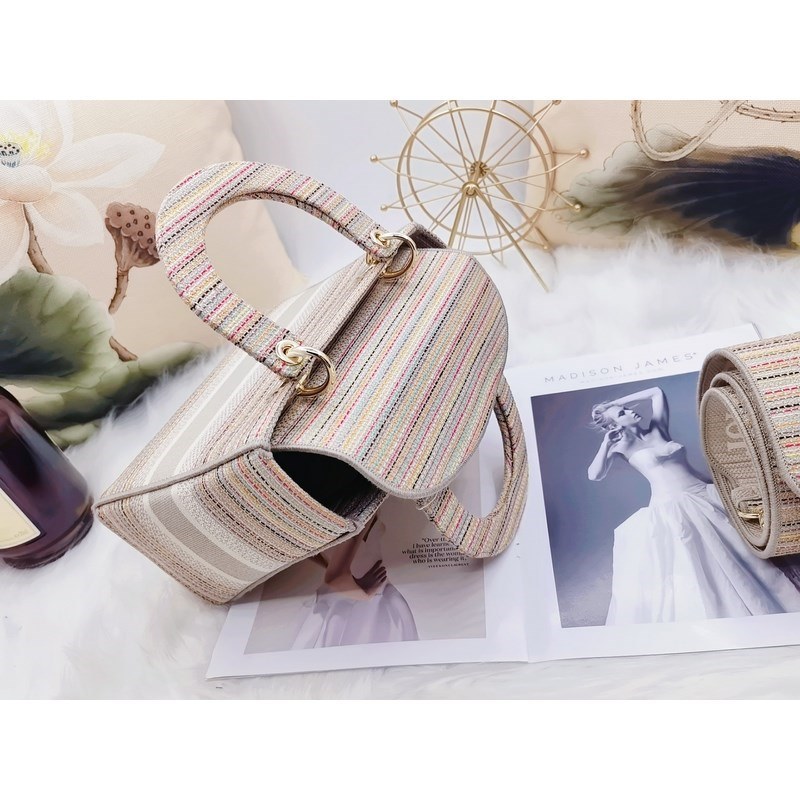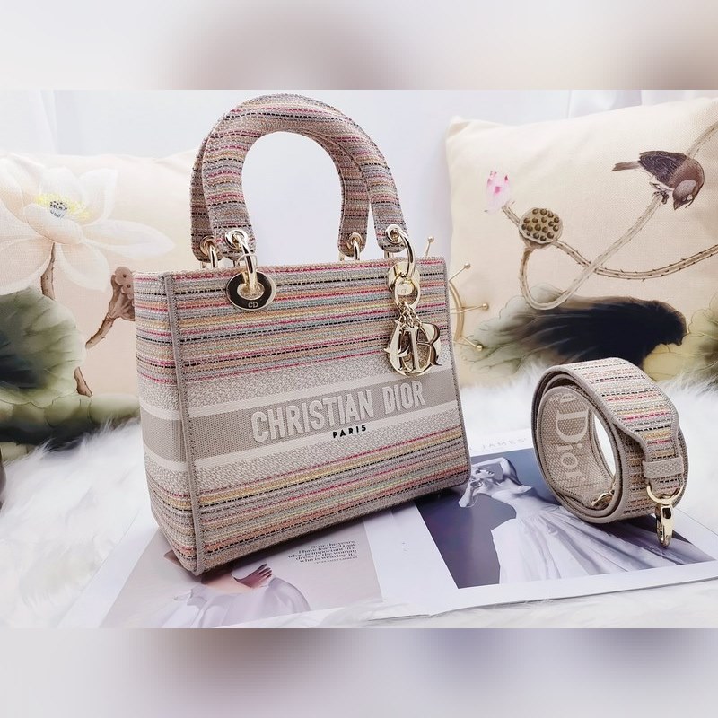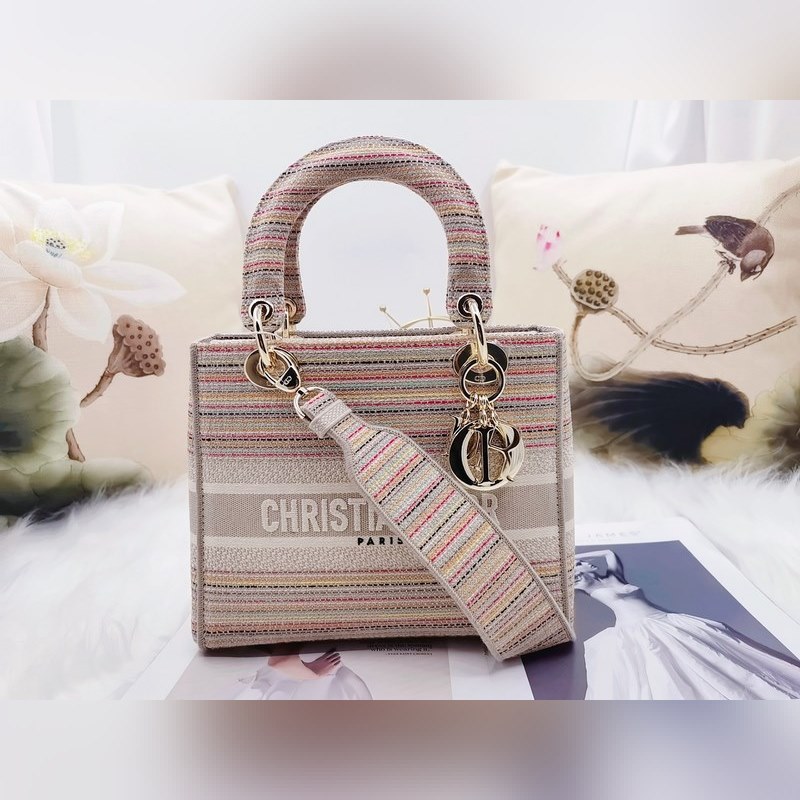 DIOR 레이디 디올 자수 컬렉션 멀티 컬러 스트라이프 자수 라이트 골드