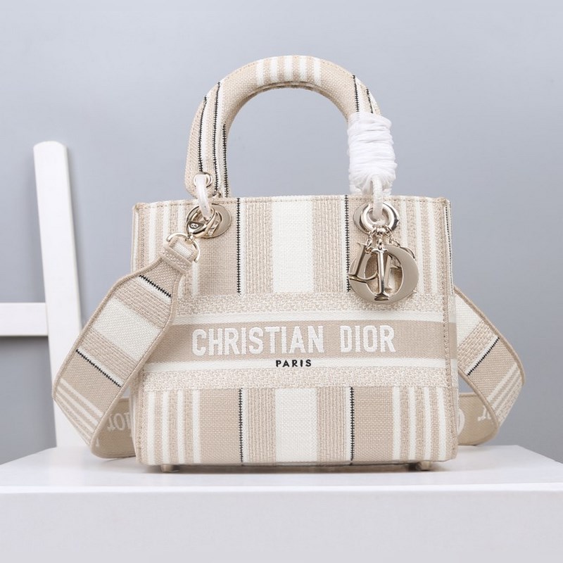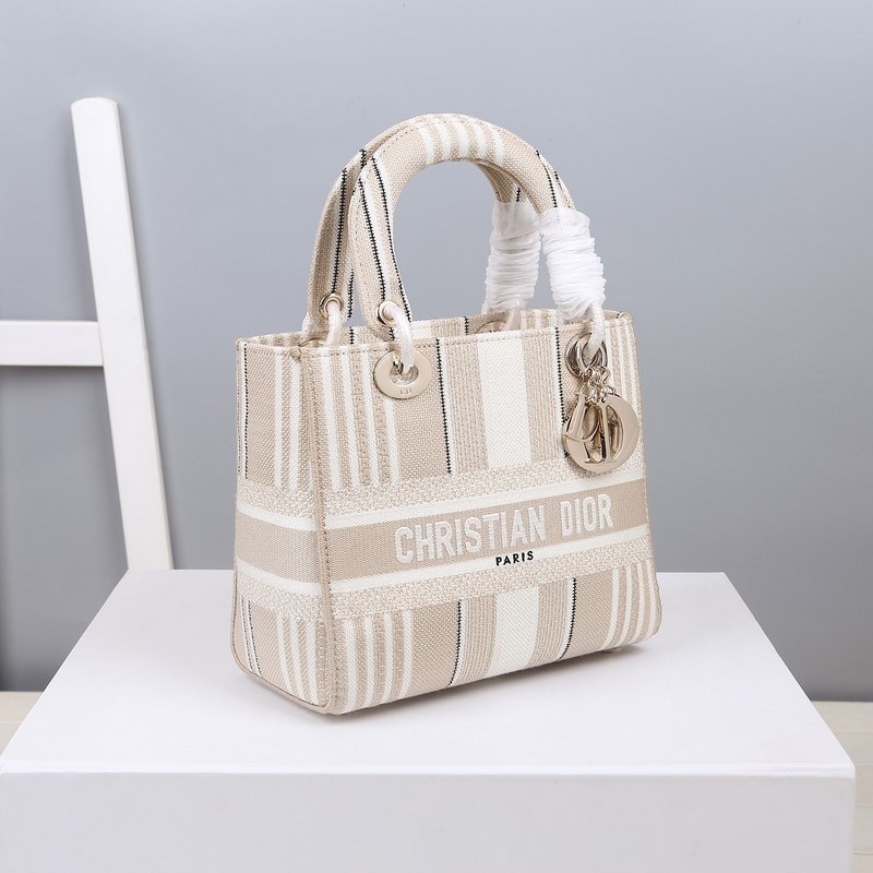 DIOR 레이디 D-라이트 5패널 자수 스트라이프 미디엄 모델 바야데르