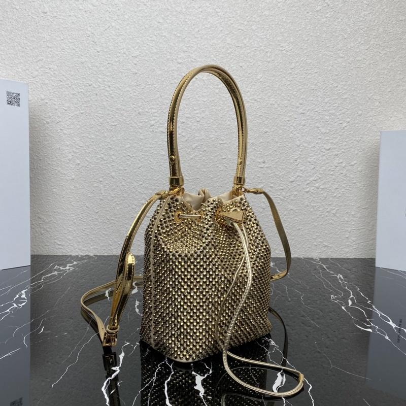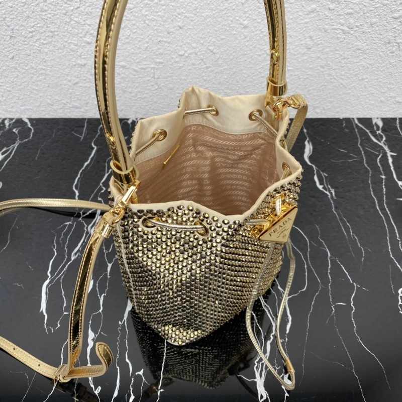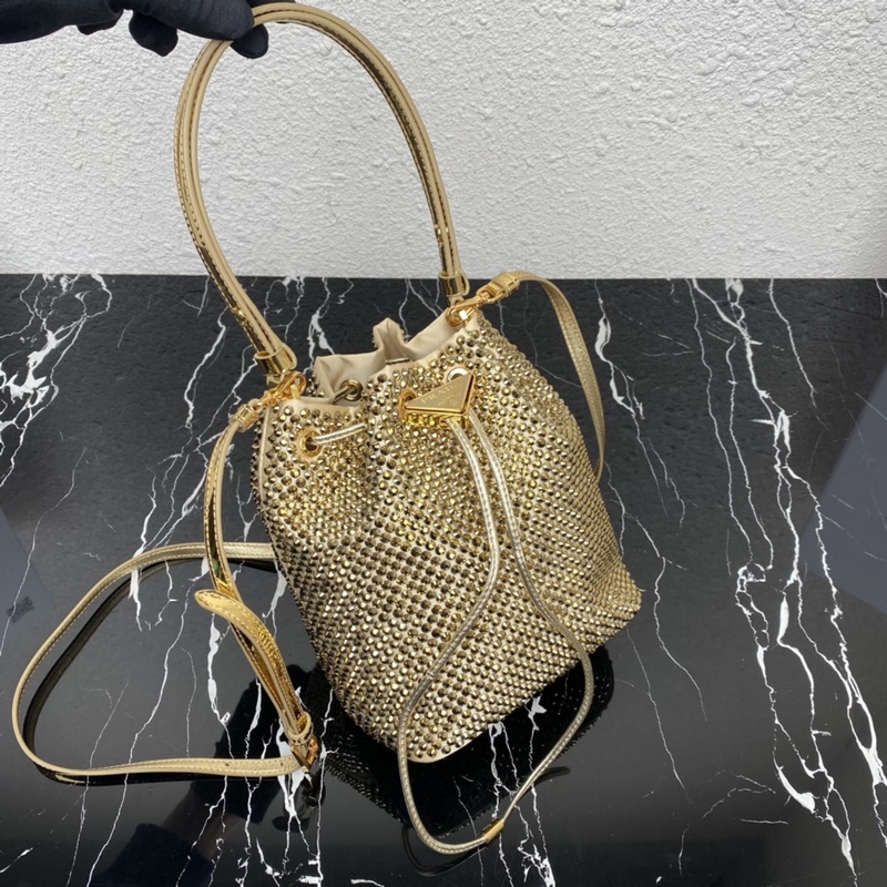 [최고의 오리지널 싱글] 2023년 신상 크리스탈 버킷 백 1BE067 이 크리스탈 버킷은 수입된 모조 크리스탈과 새틴 소재를 조합하여 만들어졌으며 디자인을 열고 닫을 수 있는 에나멜 금속 삼각형 로고로 장식되어 있습니다. 짧은 어깨끈은 길이 조절이 가능하며 긴 어깨끈은 탈부착이 가능하고 길이 조절이 가능합니다. 눈길을 사로잡는 블링블링한 효과가 있어 정말 귀엽습니다. 다양한 의상과 쉽게 매치할 수 있고 귀여움과 멋스러움의 두 가지 매력을 모두 느낄 수 있습니다. 갖고 싶지 않나요? 빨리 구입하세요. 너무 예뻐서 정말 마음에 듭니다! 크기: 길이 16cm 높이 21cm 폭 10cm
