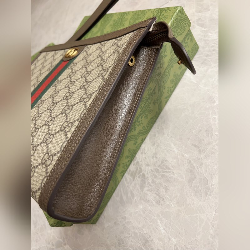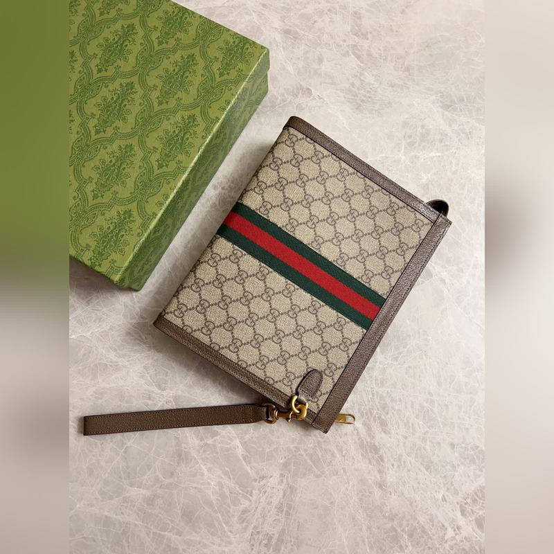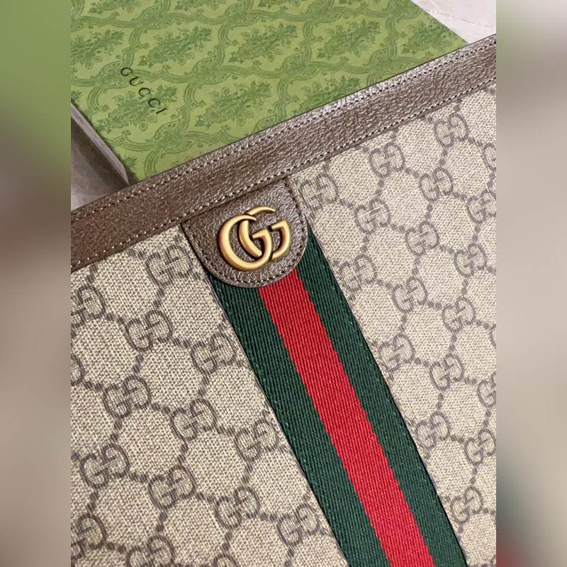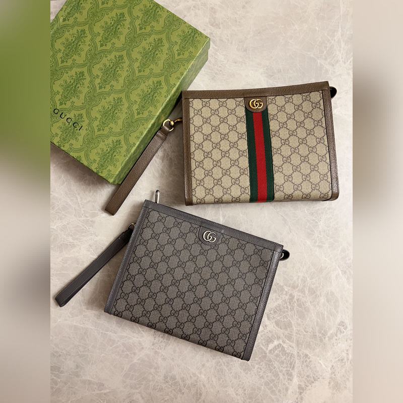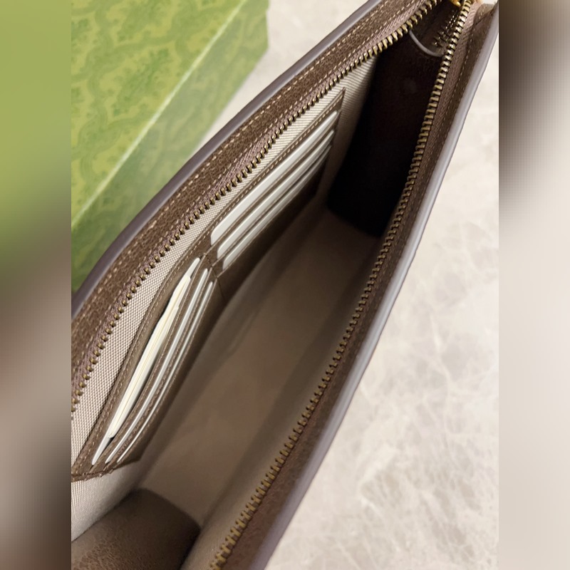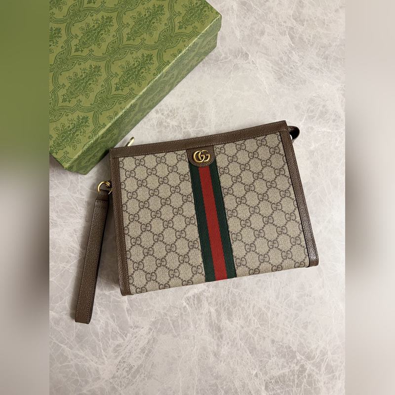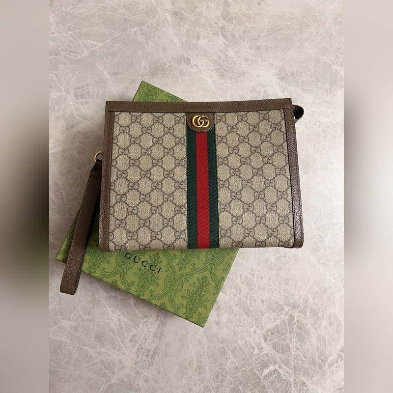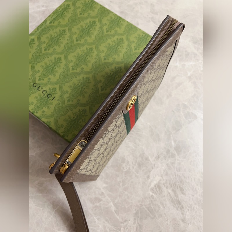 구찌 오피디아 클러치 백 베이지/에보니 GG 브라운 가죽 탈착식 손