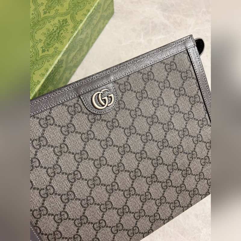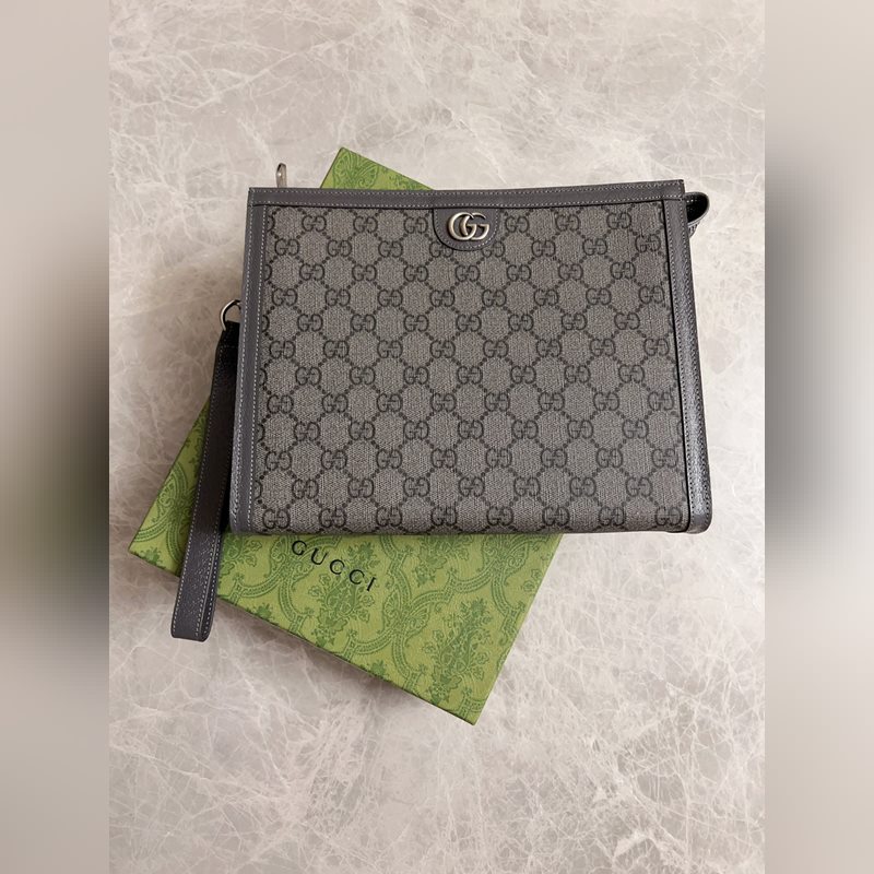 Gucci Ophidia 클러치 백 그레이/블랙 GG 그레이 가죽 탈