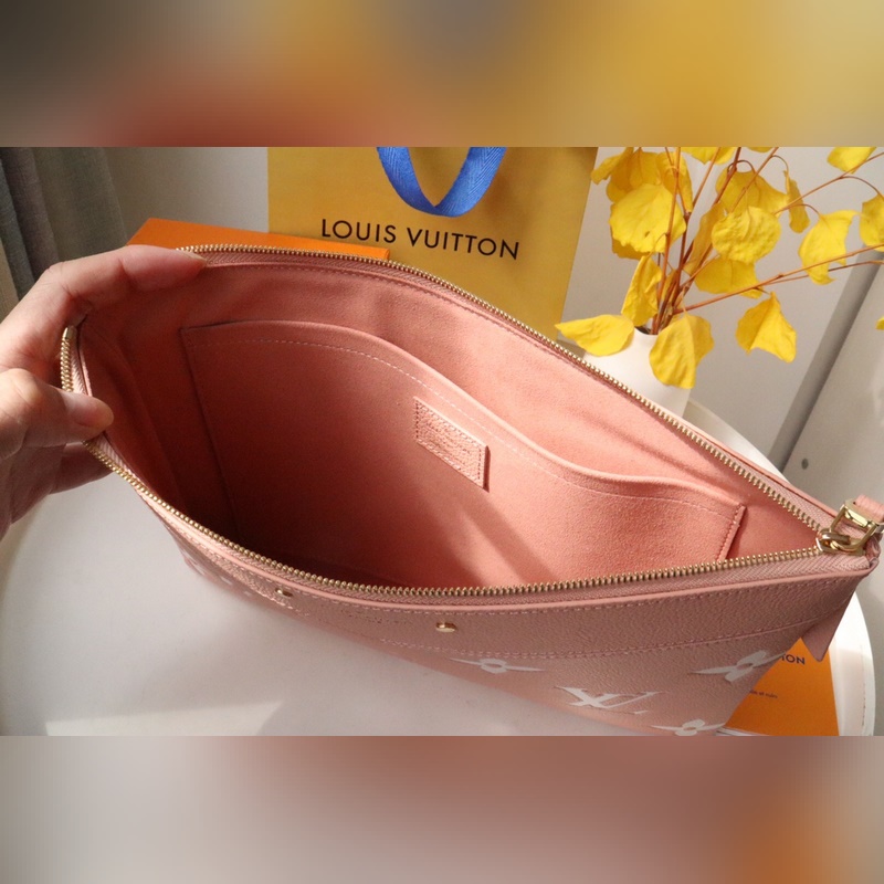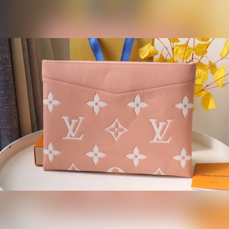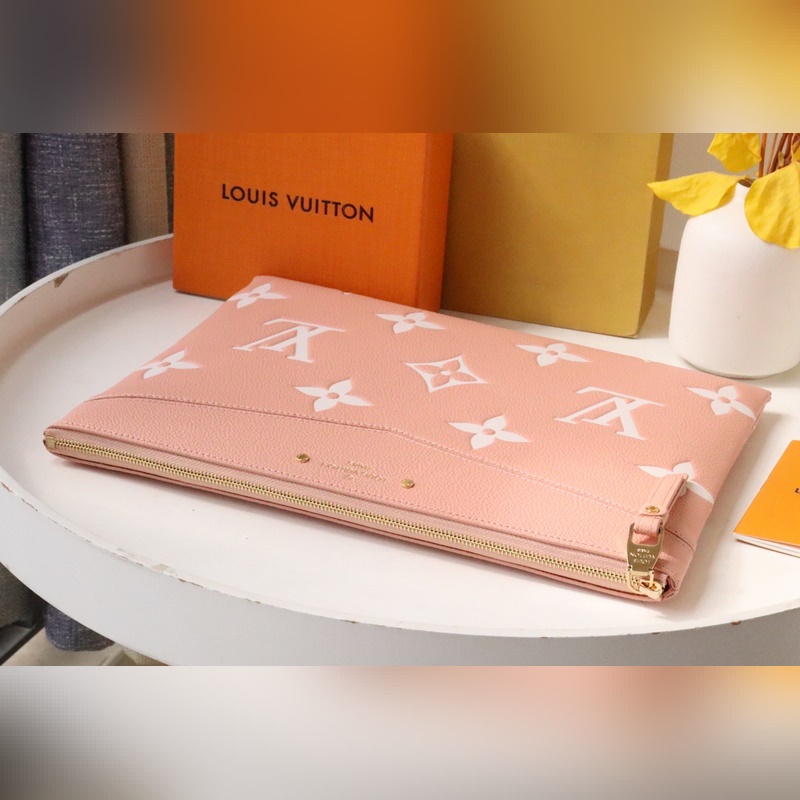 부드러운 모노그램 앙프렝뜨 가죽에 상징적인 루이 비통 모노그램 엠보싱이