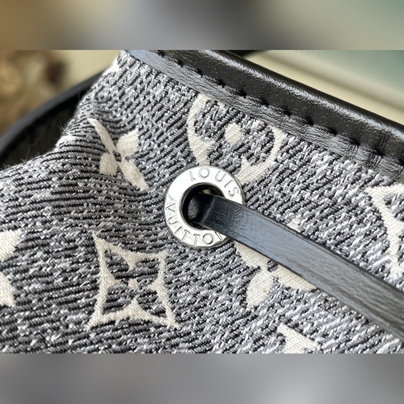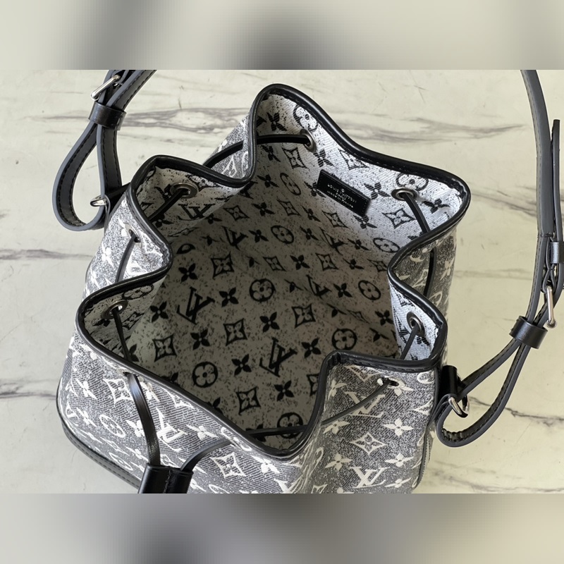 아이템 번호: M21461 새로운 스타일(데님) 이 쁘띠 노에 버킷백은 샌드워싱 처리된 자카드 데님 소재에 가죽 트리밍과 스티치 디테일이 더해져 있습니다. 컴팩트한 형태임에도 불구하고 넉넉한 수납공간을 갖추고 있으며 끈으로 고정할 수 있고 어깨에 메거나 몸에 걸칠 수 있도록 길이 조절이 가능한 어깨끈이 달려 있습니다. 크기: 25 x 28.5 x 20cm 품번: SG96181280