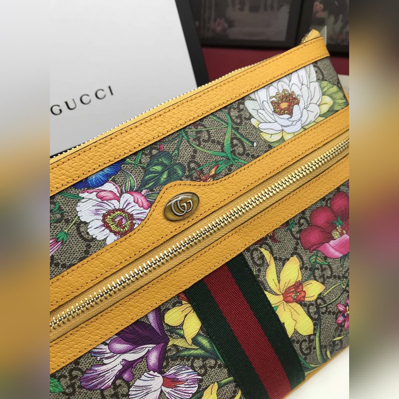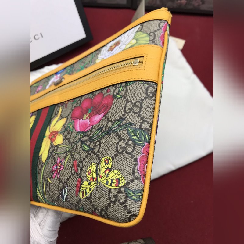 상징적인 패턴과 스트라이프 웨빙이 있는 GG Supreme 고급 꽃무늬